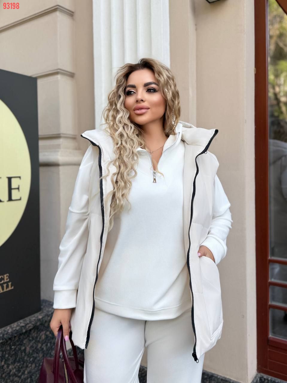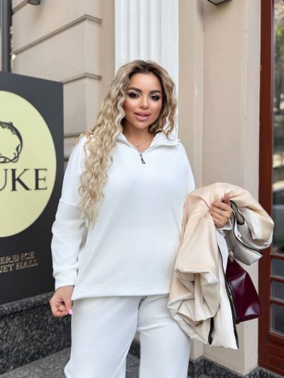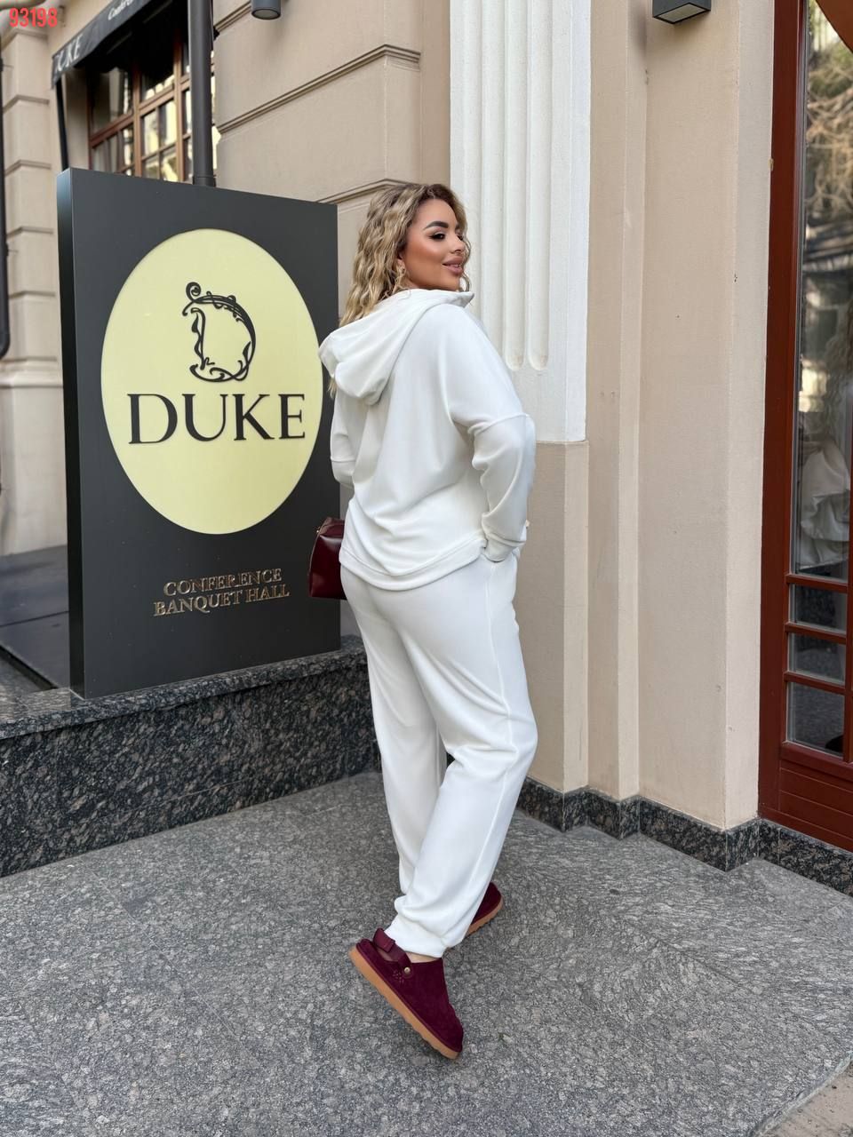 Пояс на резинці+ канат, манжет знизу штанів, рукав реглан, для зручності є затяжка в кофті, капюшон не знімається, блискавка робоча