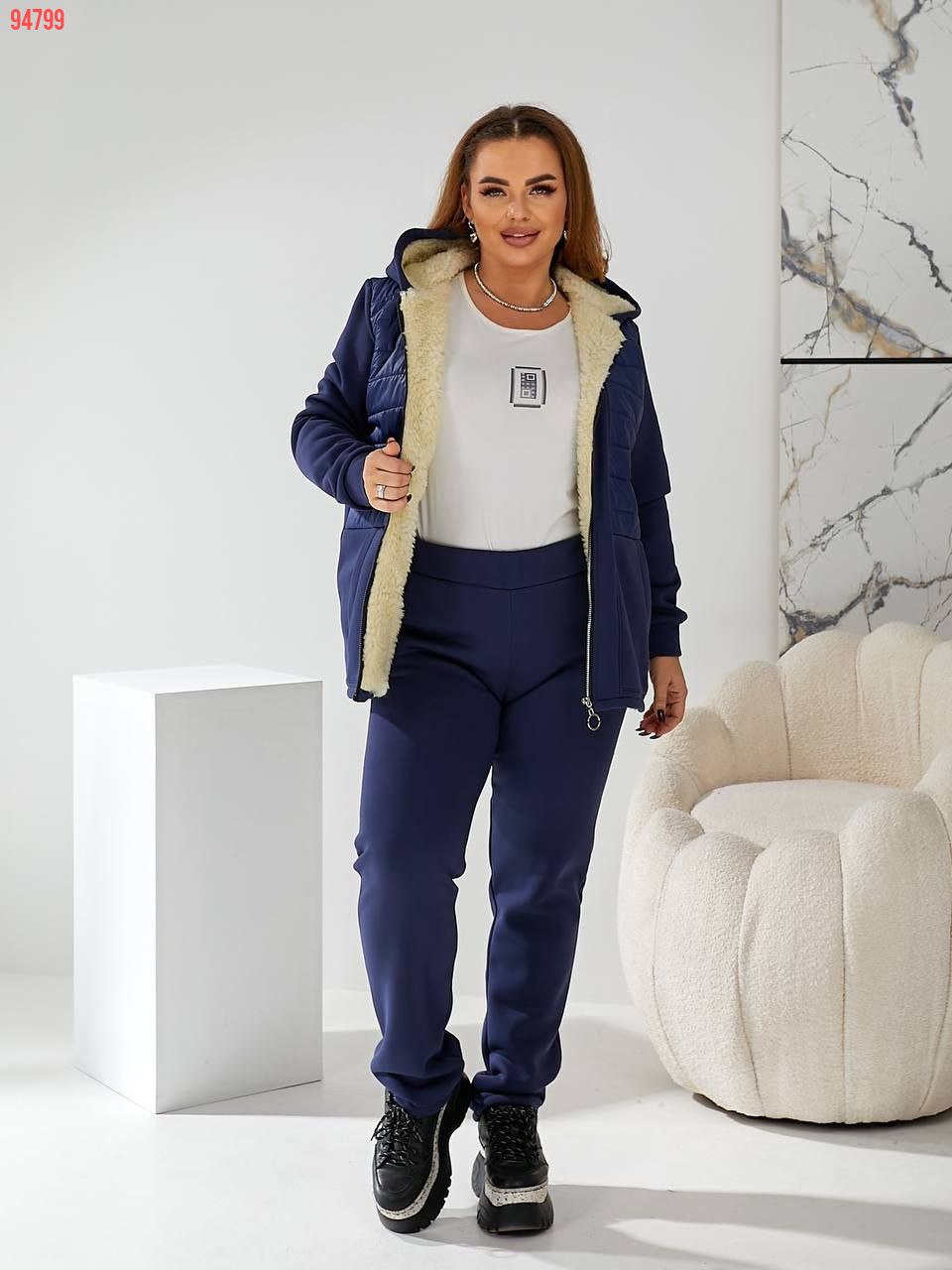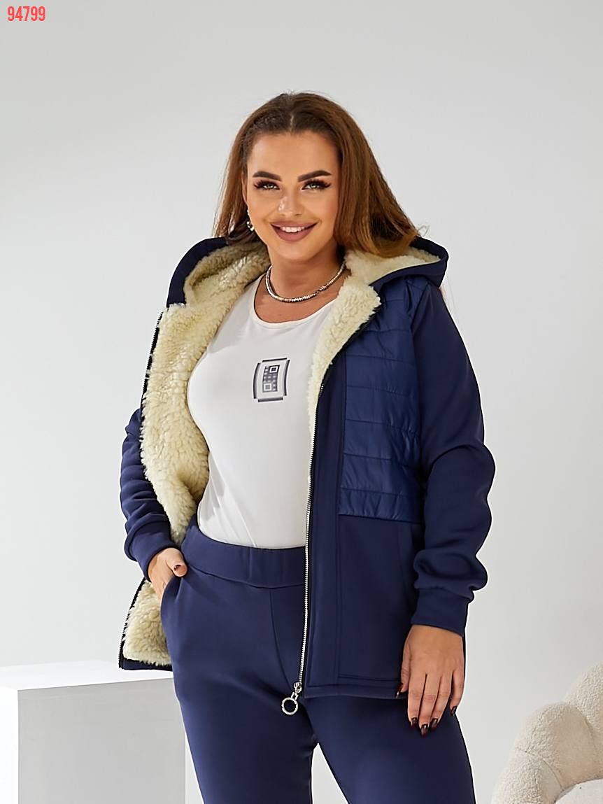 Тканина: трикотаж 3-х нитка начіс, підклад (поличка та спинка, капюшон) штучна овчина