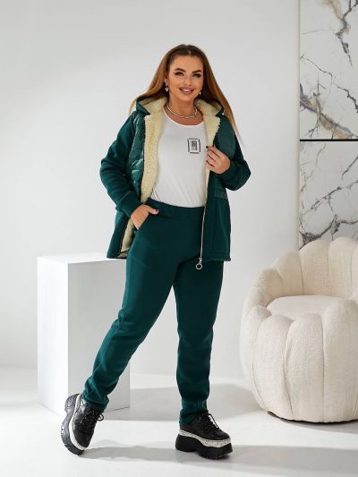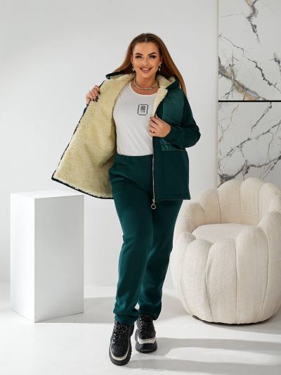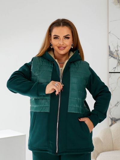 Тканина: трикотаж 3-х нитка начіс, підклад (поличка та спинка, капюшон) штучна овчина