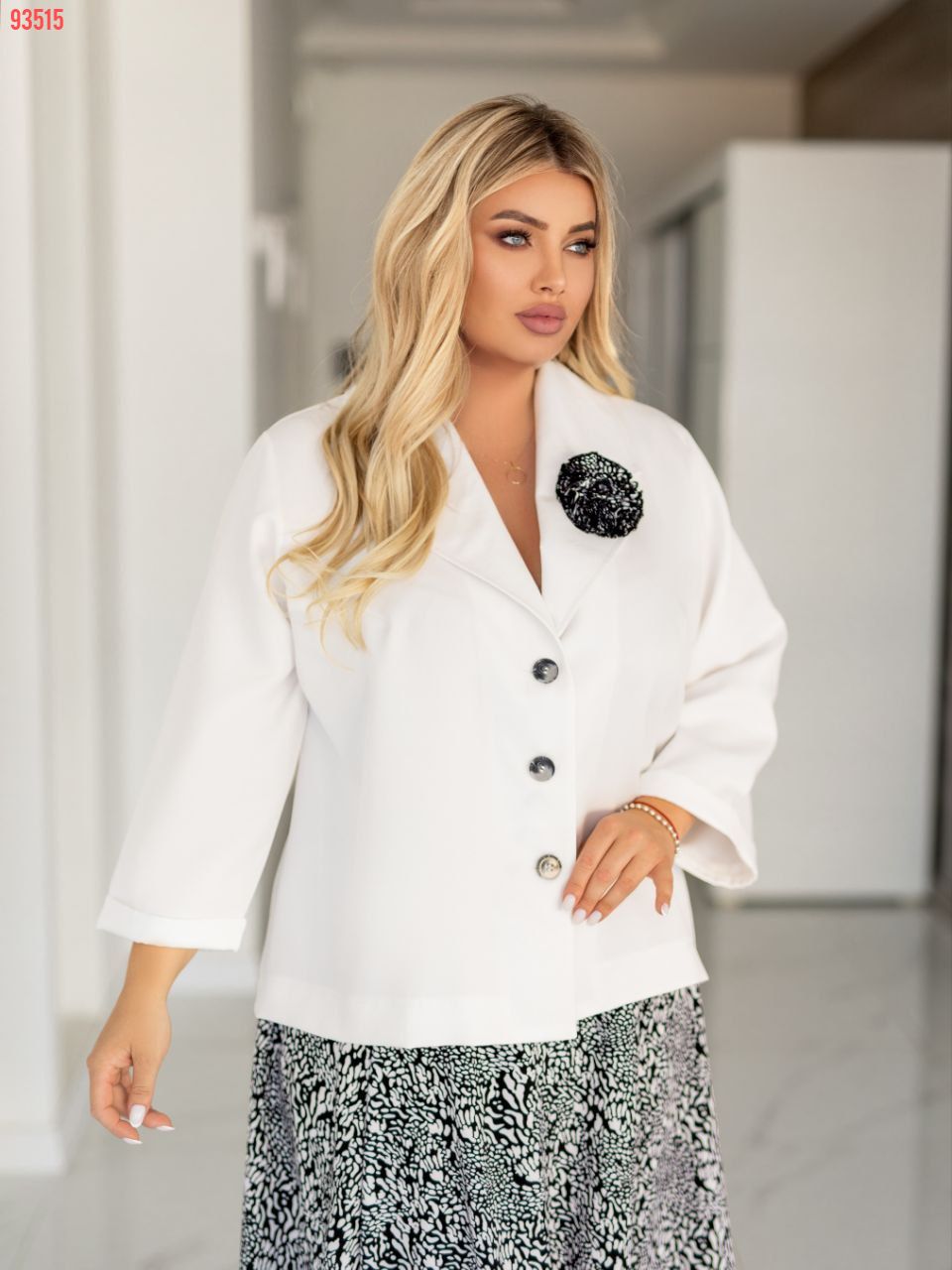 Піджак вільного крою. який прикрашений знімною брошкою .