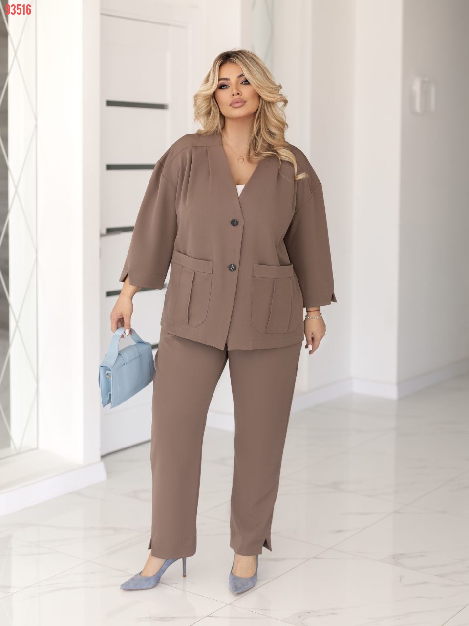 Додаткові характеристики: Стильний костюм, який поєднує класичний крій і сучасні декоративні деталі.Ідеально підходить як для урочистих заходів так повсякденного носіння .Піджак оздоблений двома дуже зручними кишенями. Штани на резінці мають кишені по низу штанів по боковому шву мають розрізи.