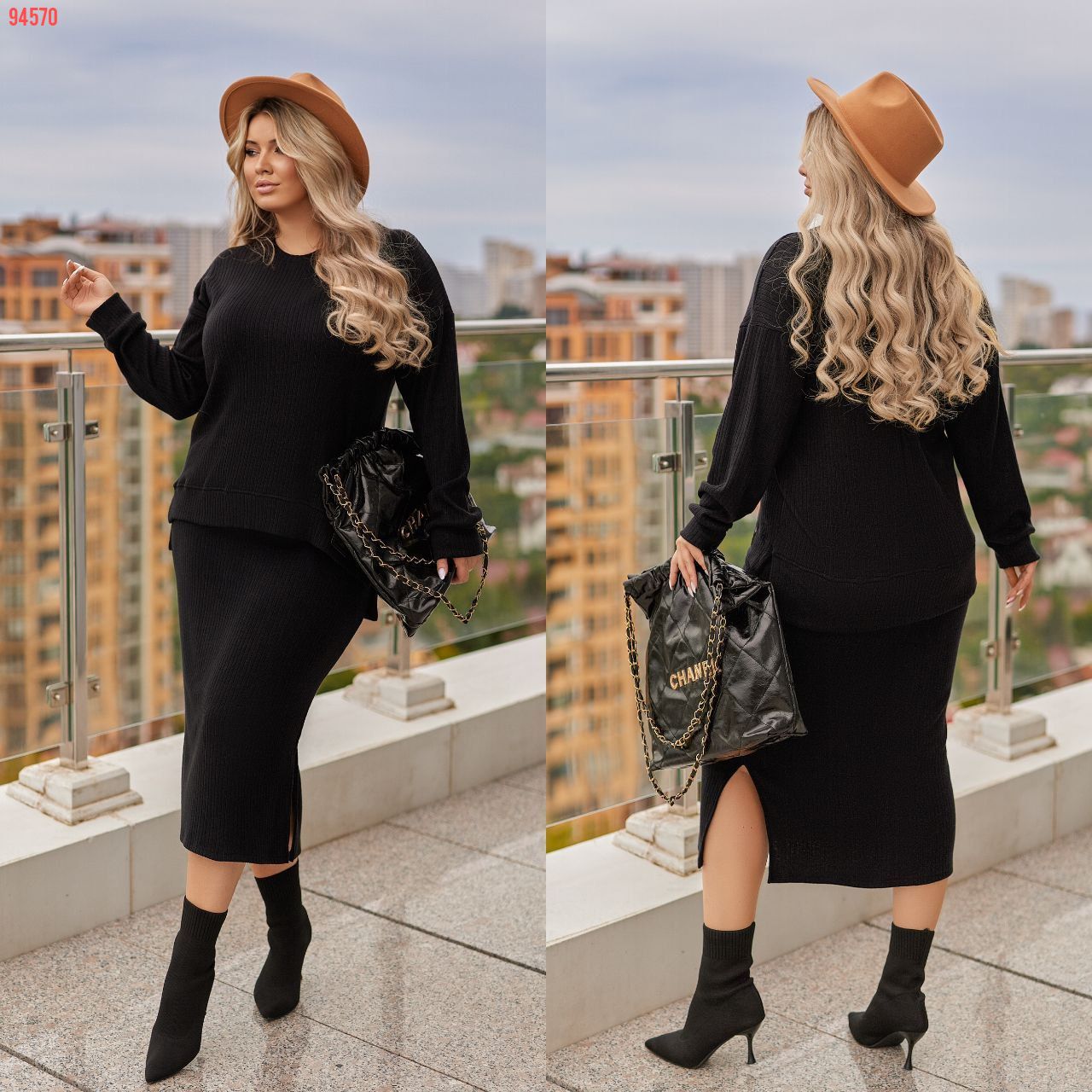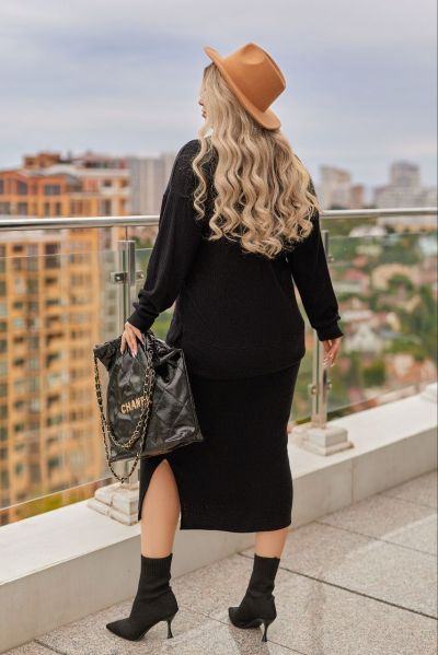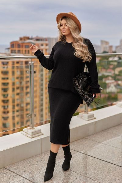 Костюм складається з светра та спідниці, виготовлений з ангари. Цей комплект ідеально поєднує в собі комфорт, тепло та жіночність, створюючи елегантний образ для будь-якого випадку. Елегантний крій спідниці підкреслює силует, спідниця на резінці, має розрізи по боковому шву . Перед светра коротший зад довший. Прекрасний вибір який поєднює тепло та комфорт.