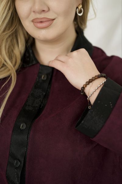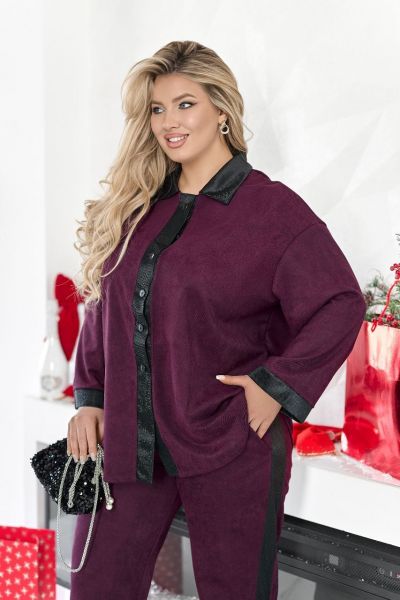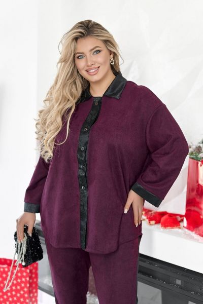Стильний жіночий костюм – двійка. Сорочка у вільному стилі,пряма , вільна. З комірцем застібається на гудзики. Низ сорочки спереду та ззаду злегка закруглений, додаючи образу романтики.
