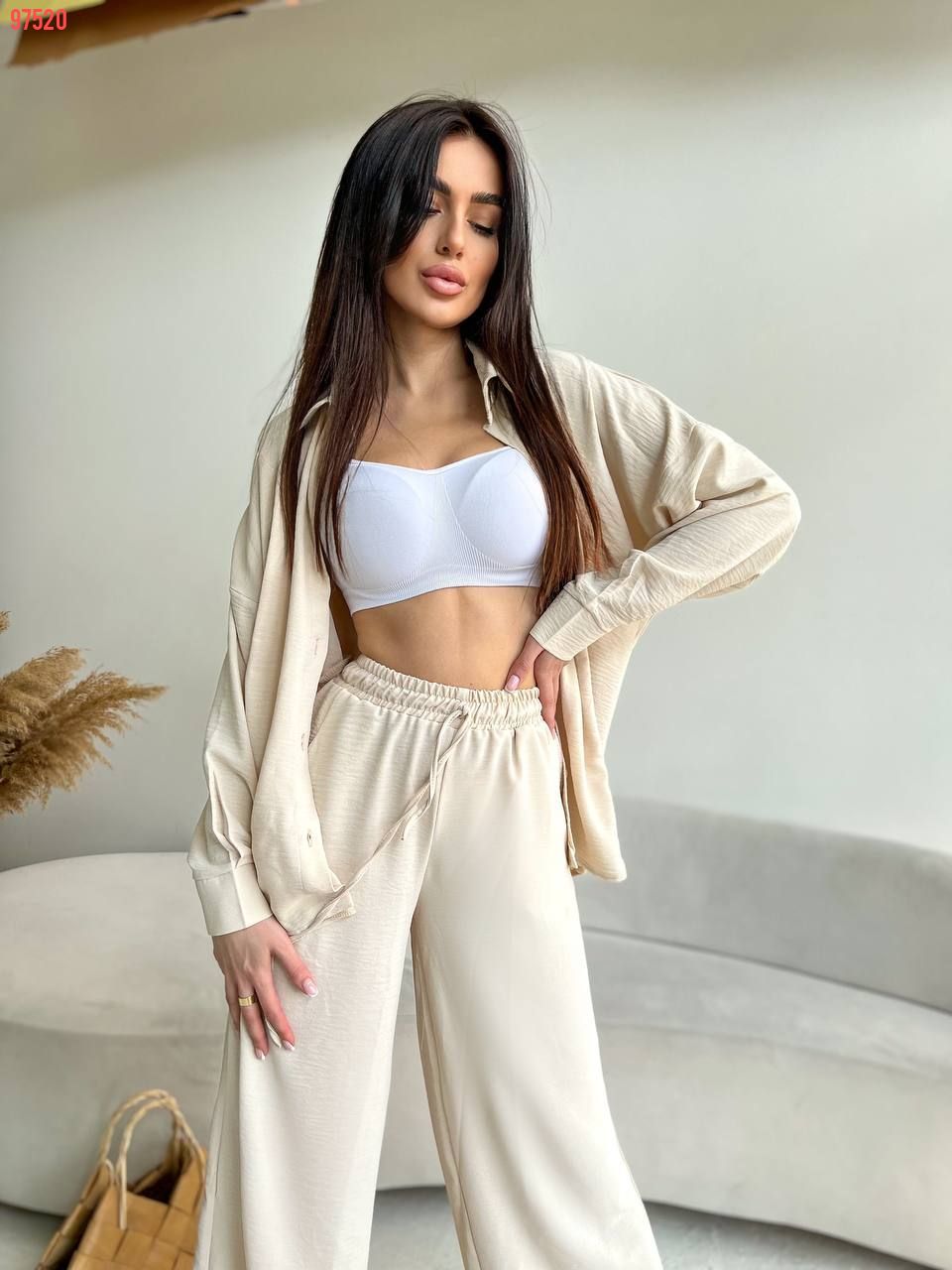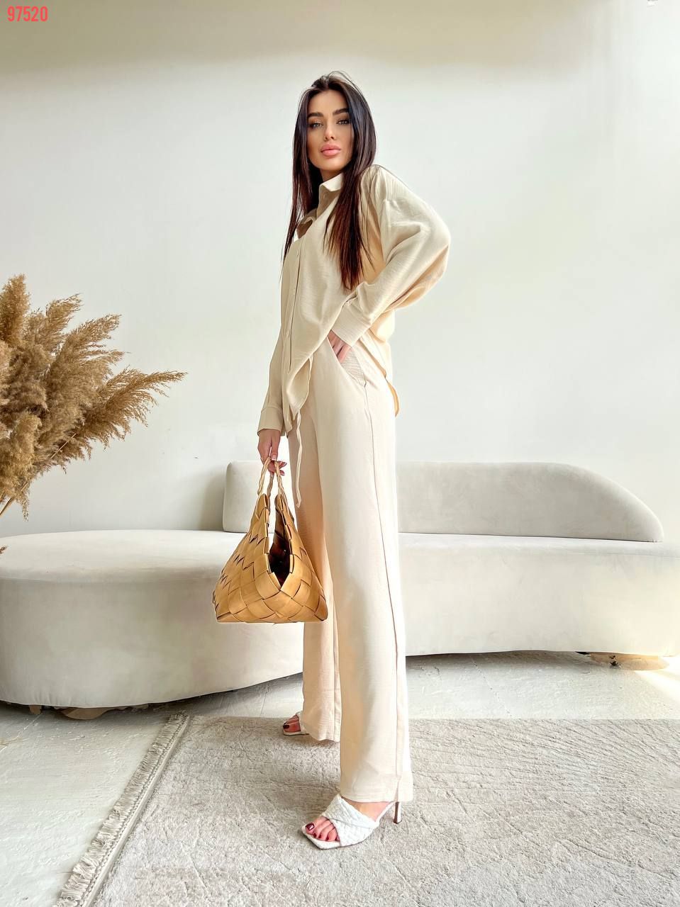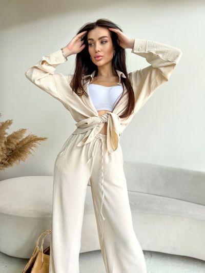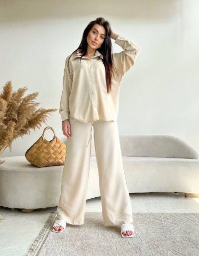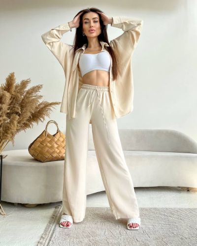 Хіт продажу цього сезону - стильні костюмчики з легкої та приємної тканини, дуже зручний та практичний, сорочка на ґудзиках, штани кльош на високій посадці Ґудзики в колір тканини