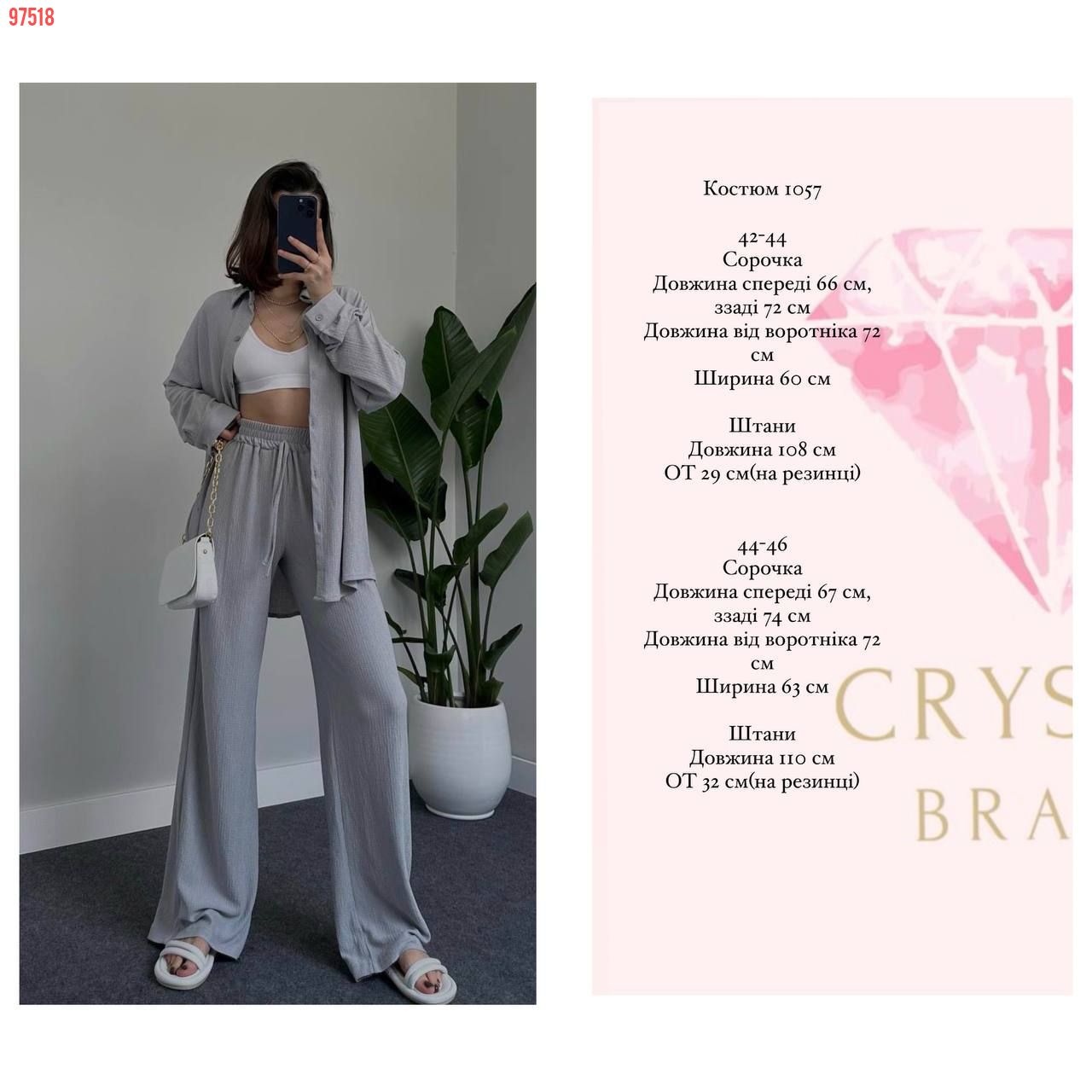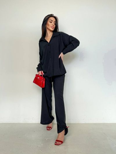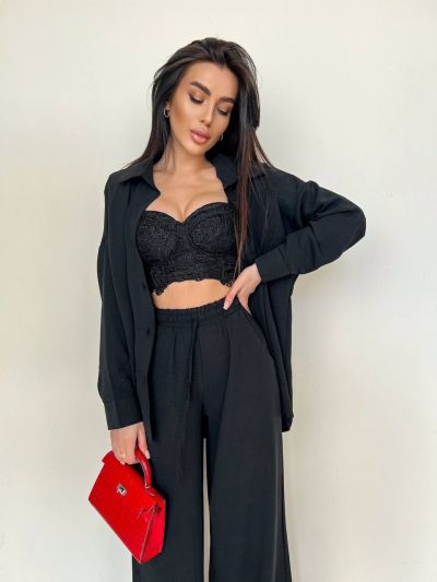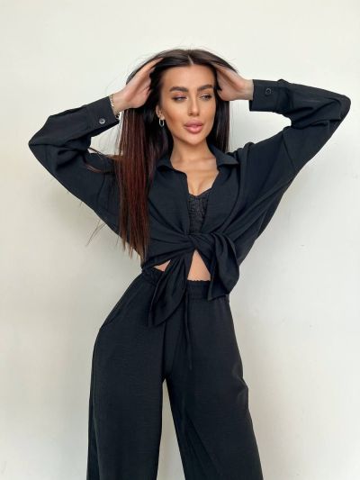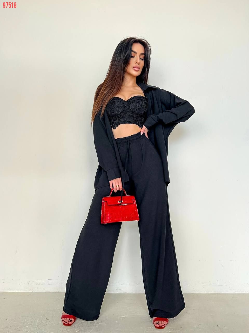 Хіт продажу цього сезону - стильні костюмчики з легкої та приємної тканини, дуже зручний та практичний, сорочка на ґудзиках, штани кльош на високій посадці Ґудзики в колір тканини