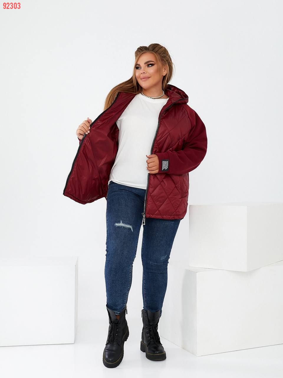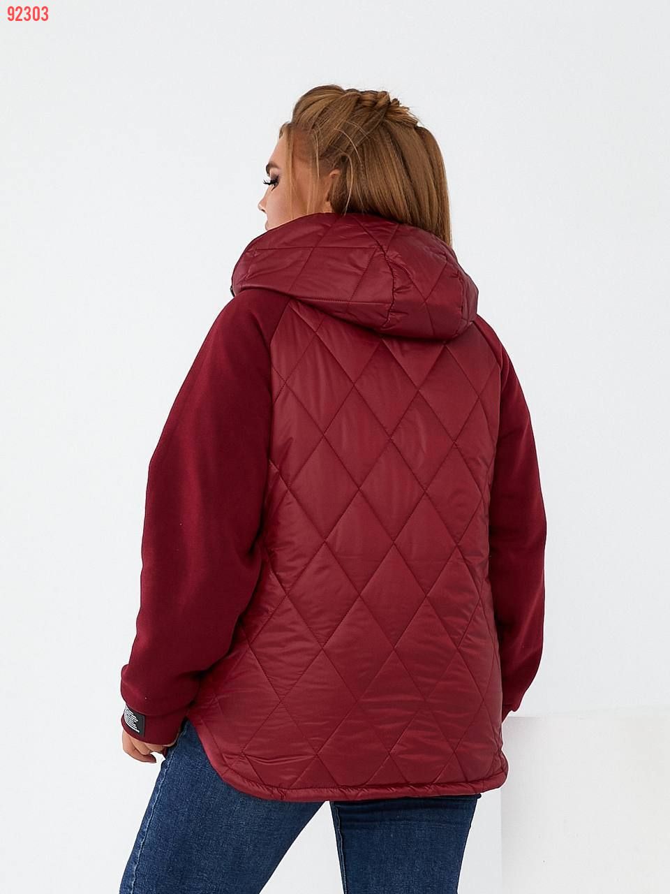Стильна комбінована куртка підійде на сезон осінь-весна, зручний глибокий капюшон, нашивка на рукаві