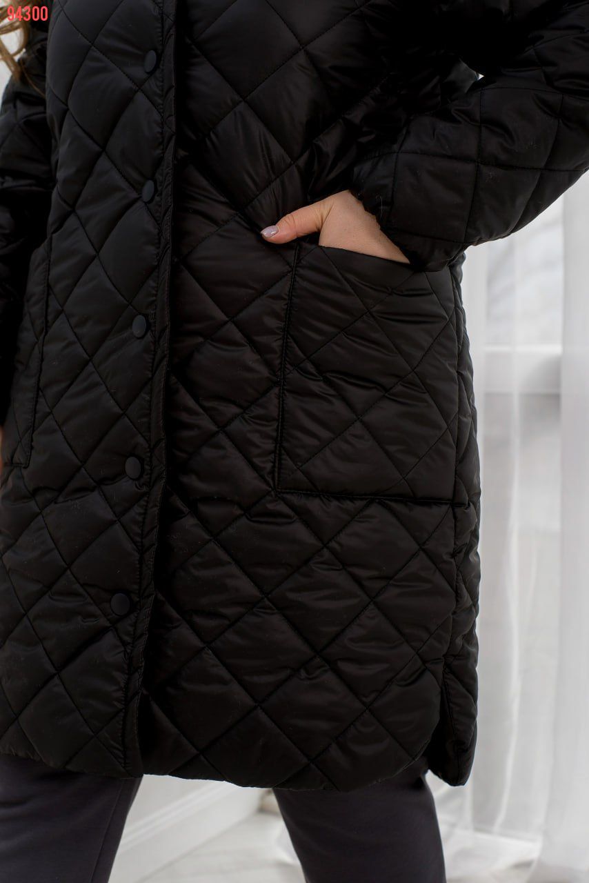 Ваша улюблена модель, вже доступна в новому амплуа. Стьобана куртка середньої довжини з високим коміром і довгими рукавами. Виріб застібається на ряд кнопок на планочці. По боках об'ємні накладні кишені. Поділ заокруглено та доповнено бічними розрізами. Куртка легко поєднується як в образах спортивного стилю, так і в стилізаціях на кожен день. Доповнюйте улюбленим костюмом та кросівками та образ на будь-який випадок готовий!
