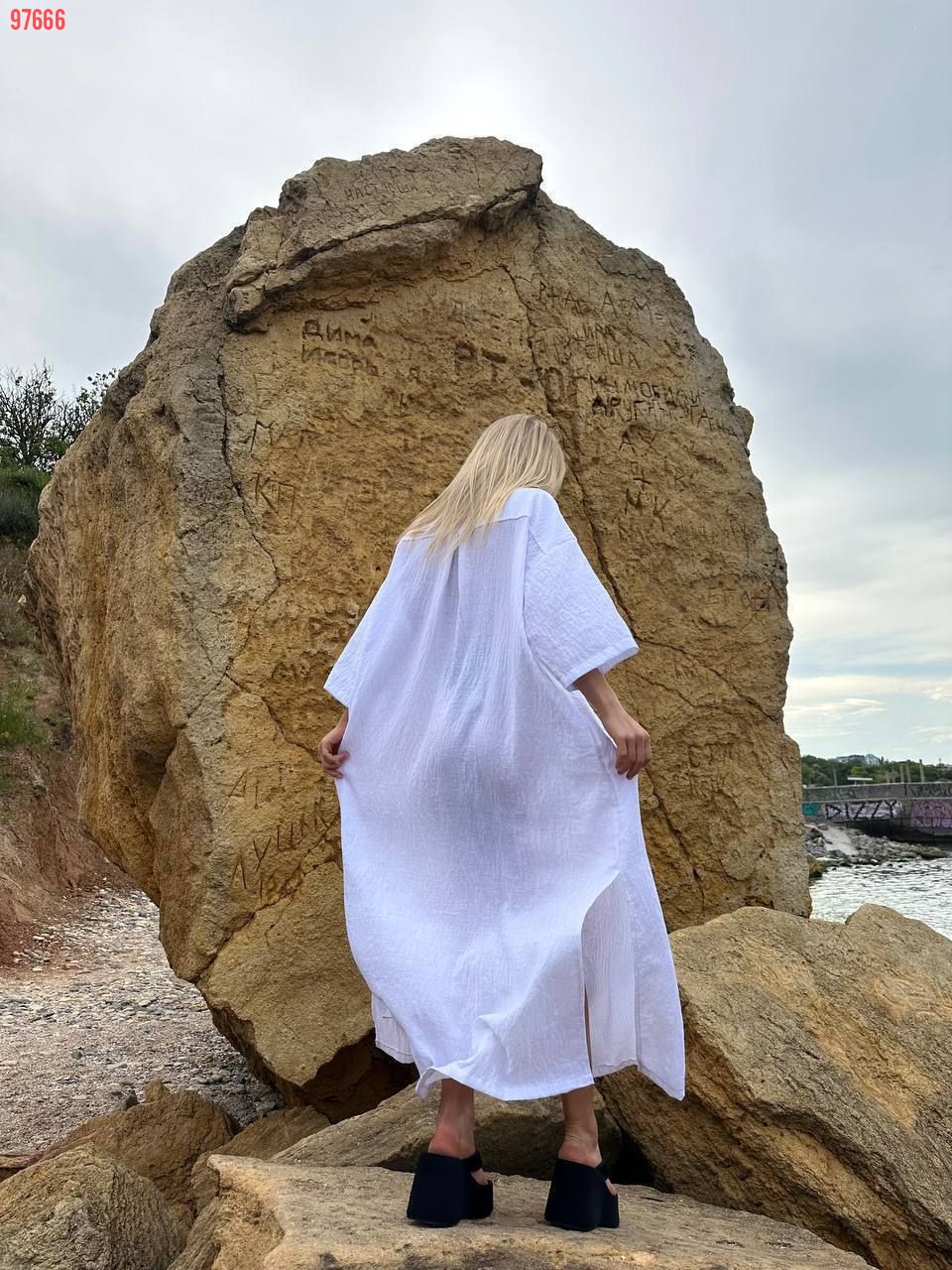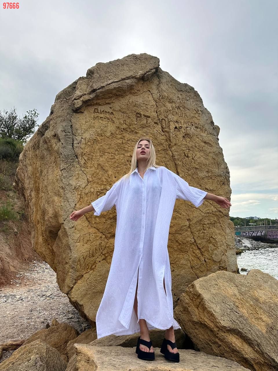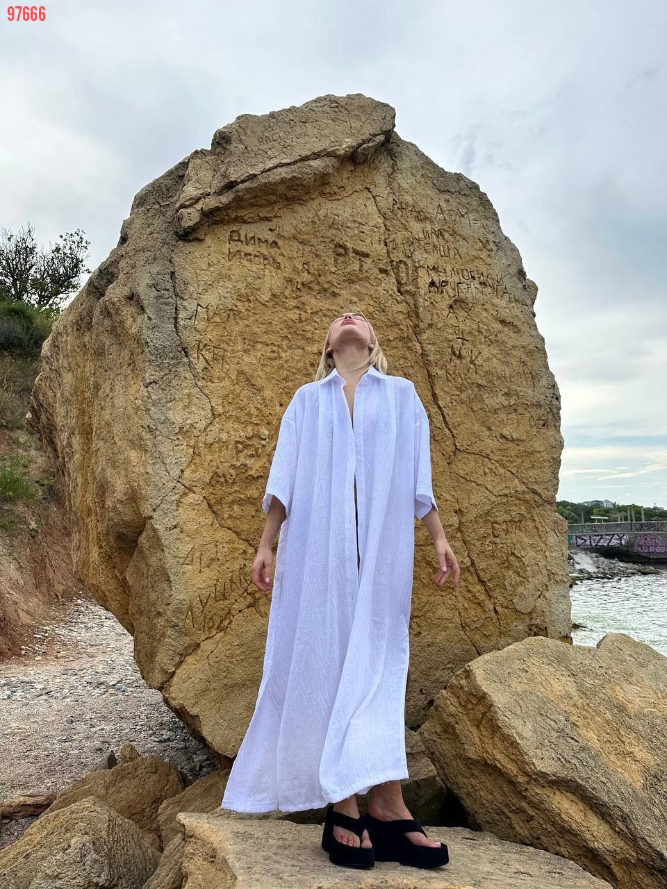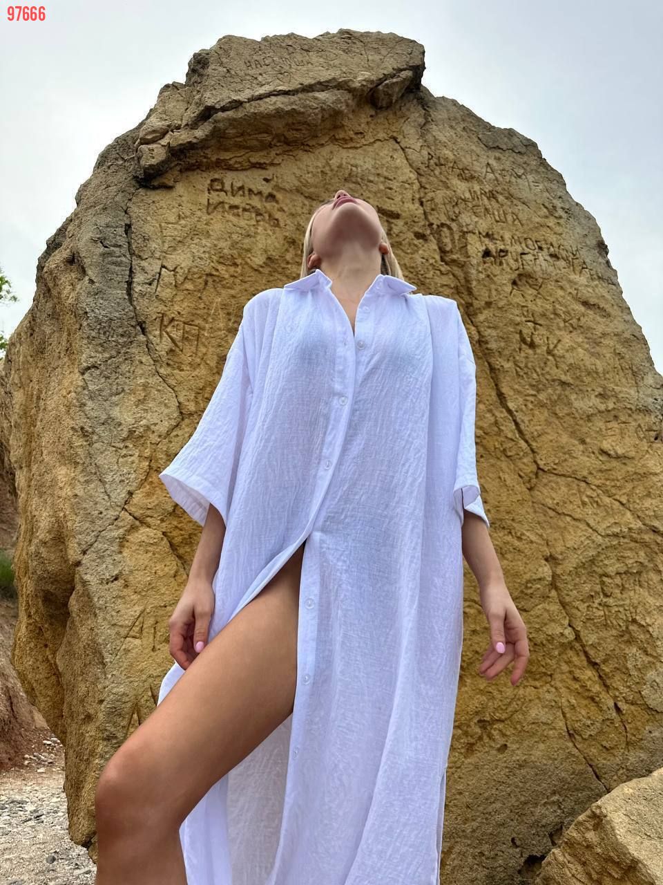 Літня легка лляна сукня-сорочка білого кольору №97666