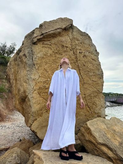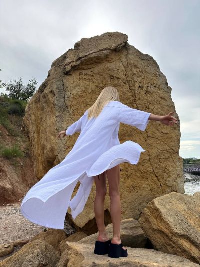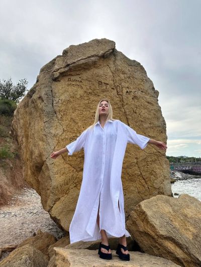 Літня легка лляна сукня білого кольору. Сукня-сорочка на будь-який випадок життя. Комфортне, стильне, створене з натурального льону, в якому навіть в самі спекотні дні буде прохолодно