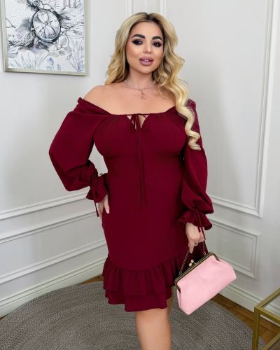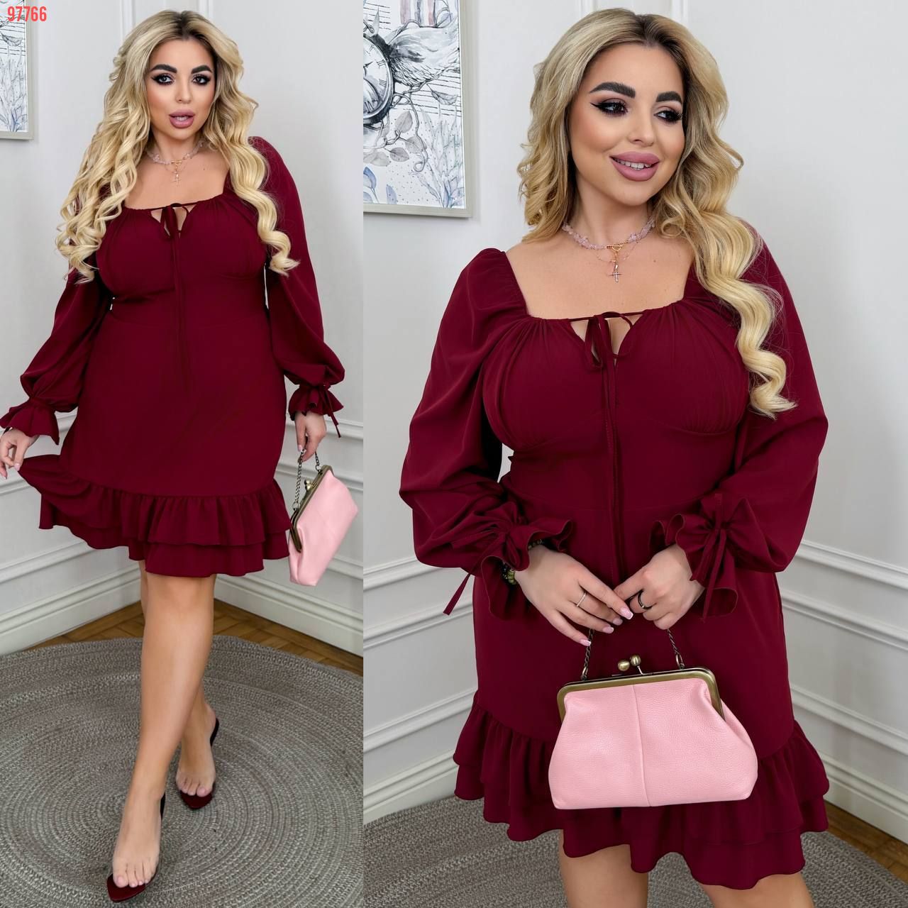 Параметри сукні (по готовому виробу) ОГ добре тягнеться за рахунок завʼязок ОТ добре тягнеться за рахунок гумці позаду талії ОГ/ОТ/ОС: 50: 106-114/82-88/114 52: 110-118/84-90/118 54: 116-124/86-92/122 56: 122-130/88-94/128