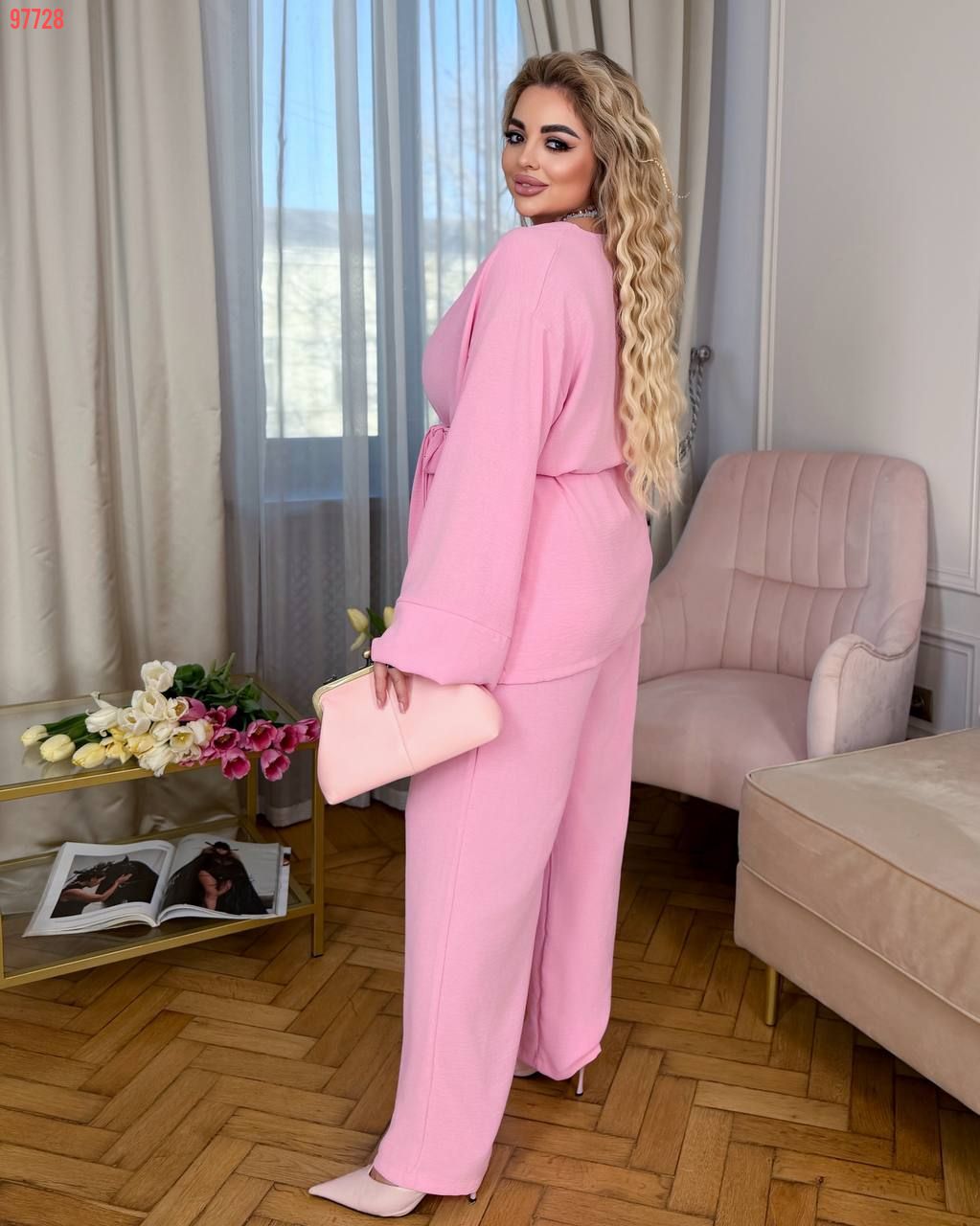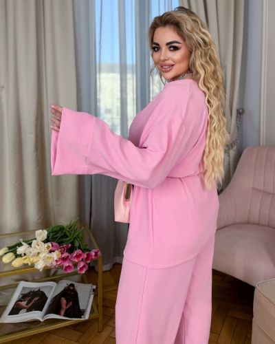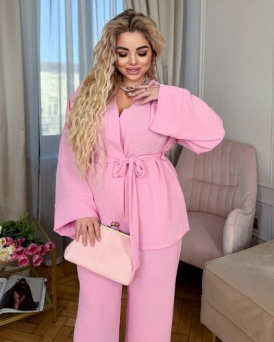 Легкий брючний костюм в кольорі барбі №97728