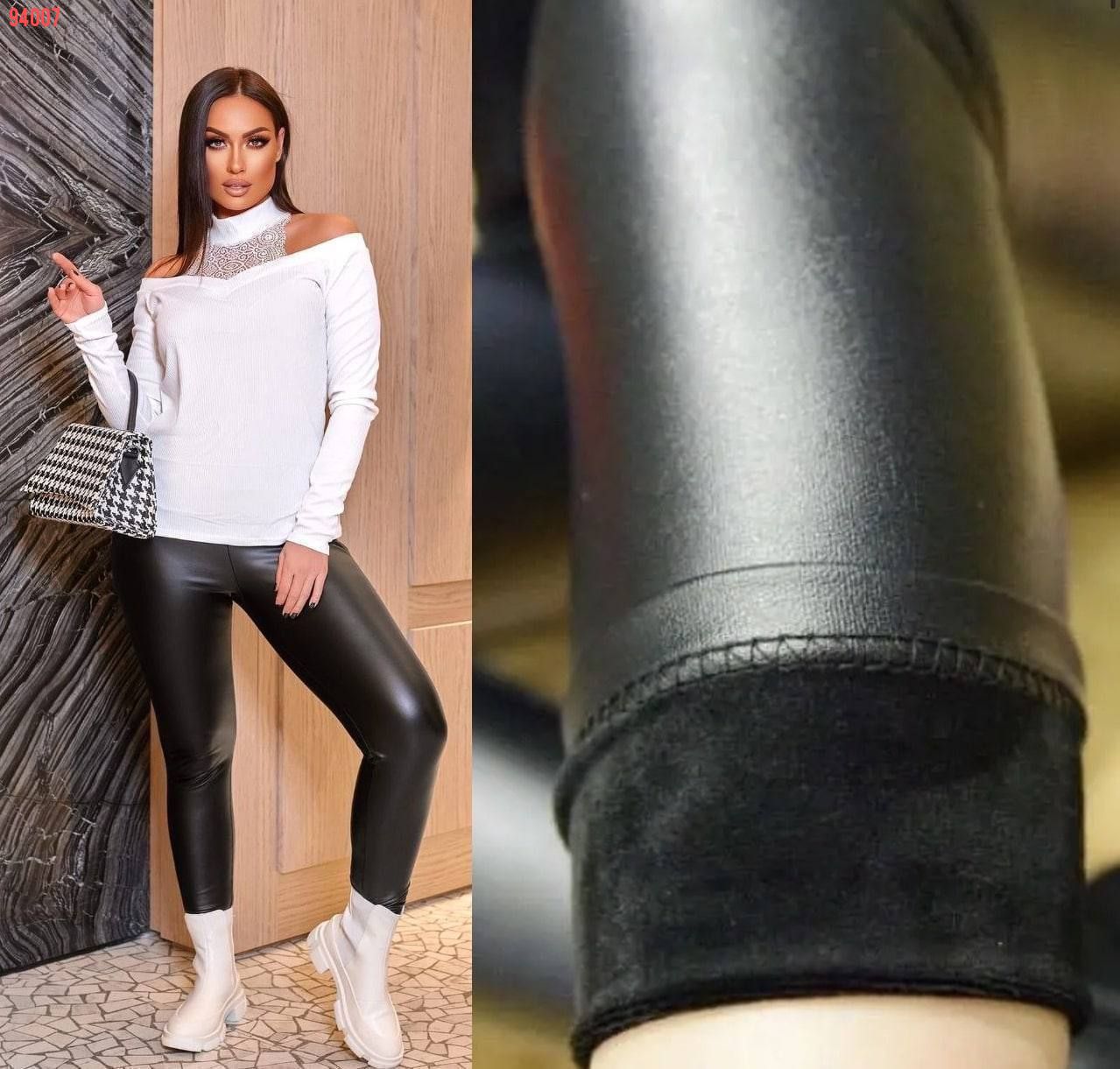 Тканина: екошкіра з утепленням (велюр). Дуже приємні на дотик. Висока якість. Теплі. Висока посадка, пояс на резинці. Гарна розтяжність. Ефект утяжки.