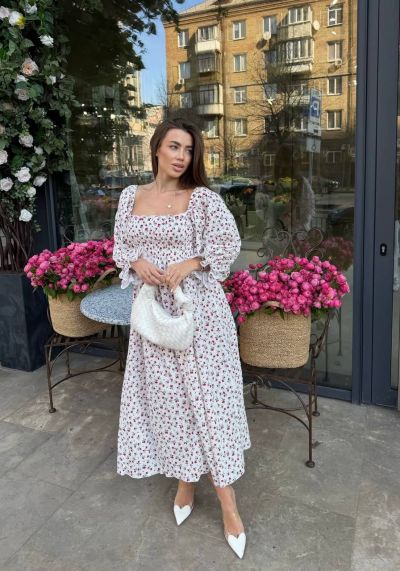 Ніжна та дуже жіночна сукня, яка створює легкий і романтичний образ. Завдяки еластичній вставці «машинка-резинка» у верхній частині ідеально сідає по фігурі та підкреслює силует.
