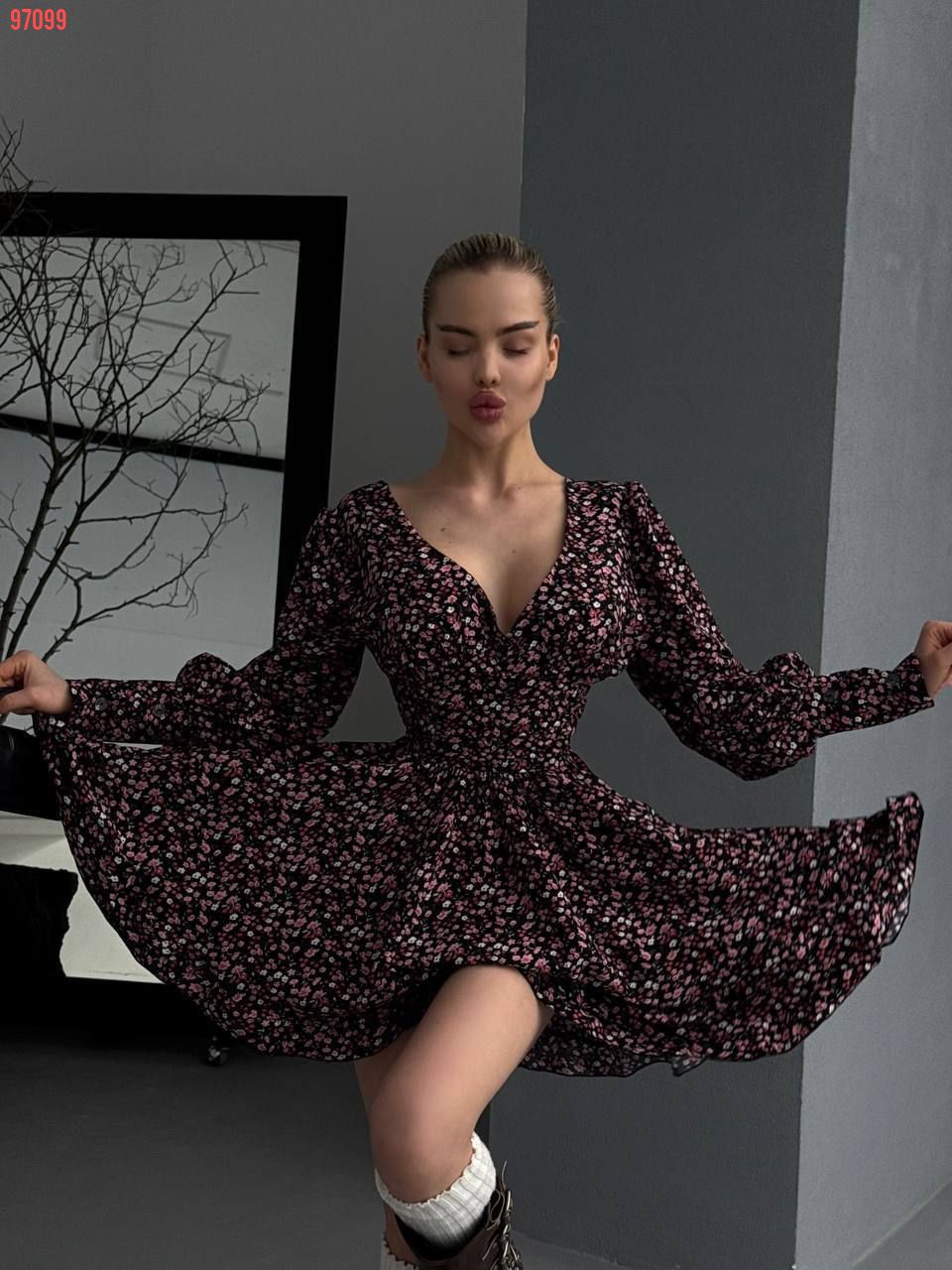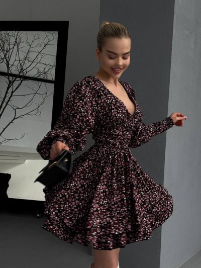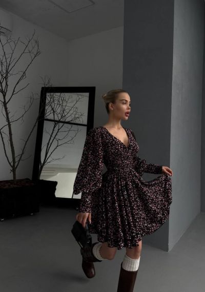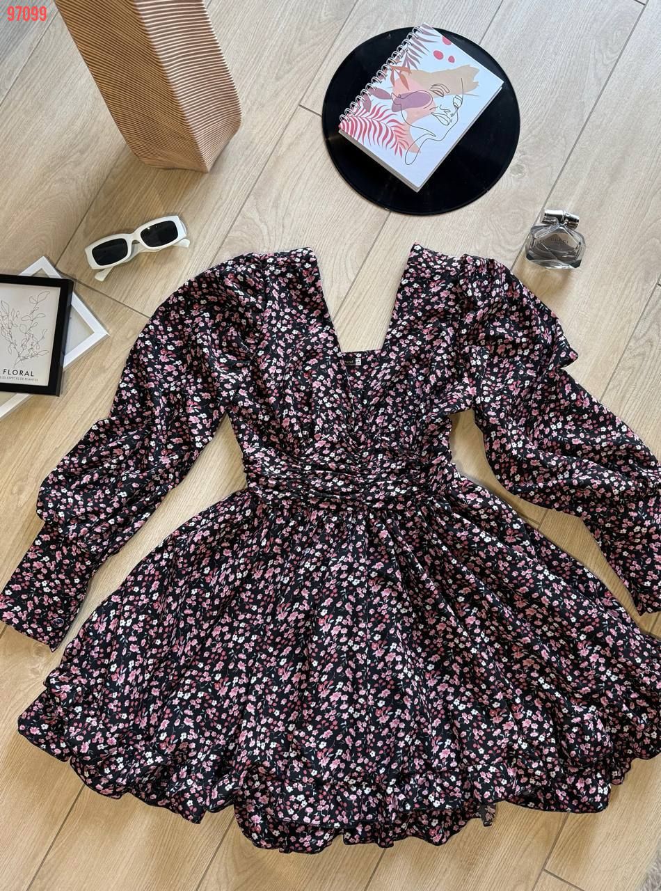 Легка тканина, пишні рукава, спідниця подвійний сонце кльош з рюшами. Ідеальний вибір для прогулянок та особливих моментів