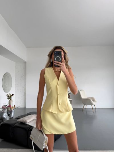 Неймовірно Стильний костюм - жилет + шорти жовтий №97750