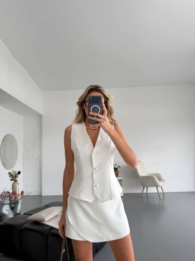 Неймовірно Стильний костюм - жилет + шорти молочний №97748