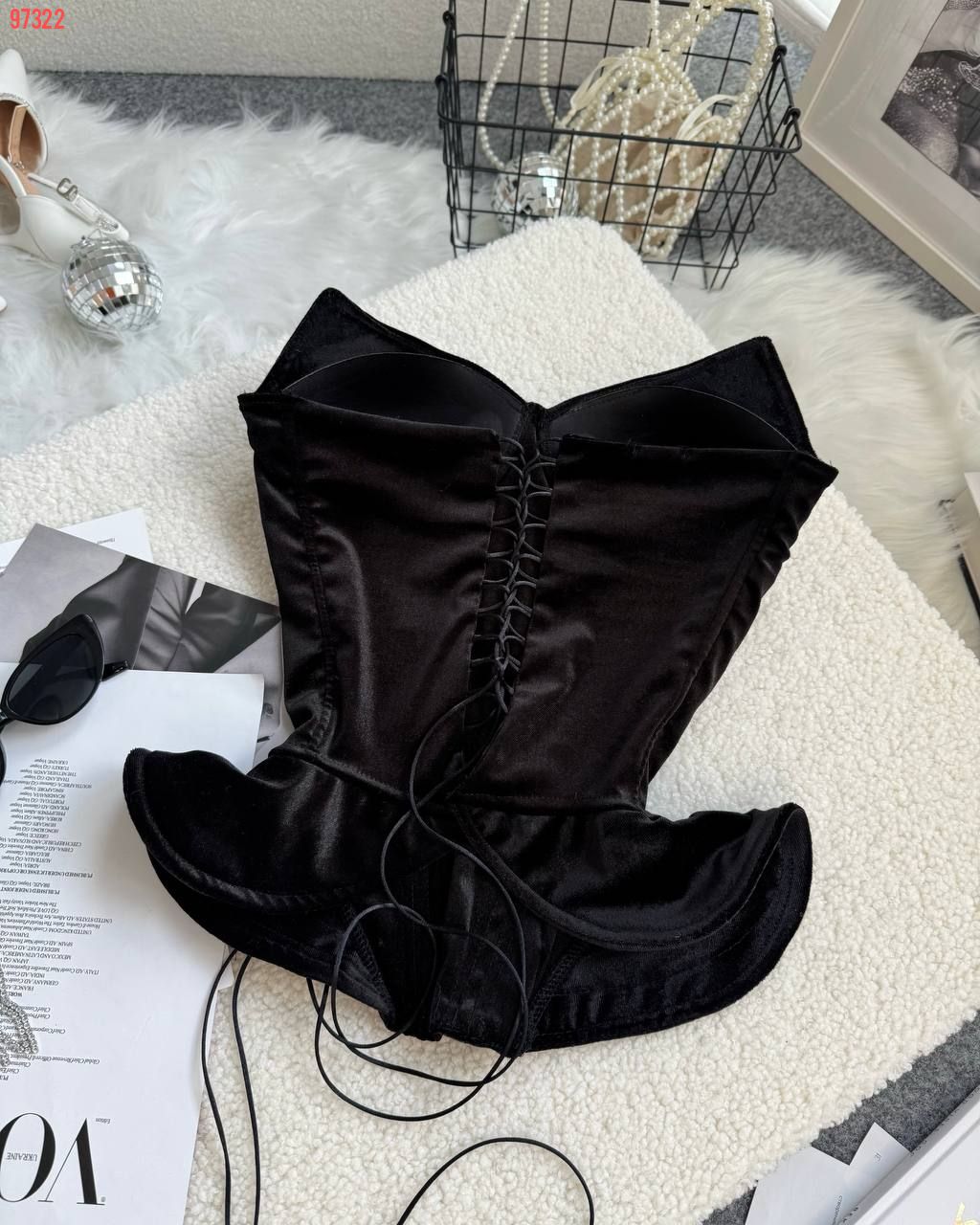 Оксамитовий корсет чорний №97322