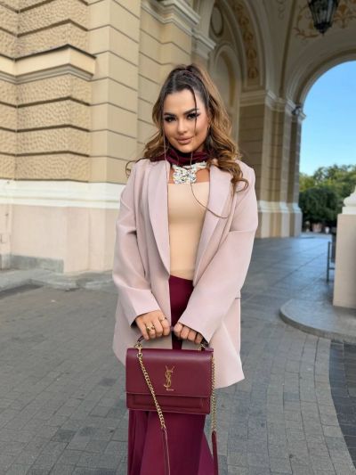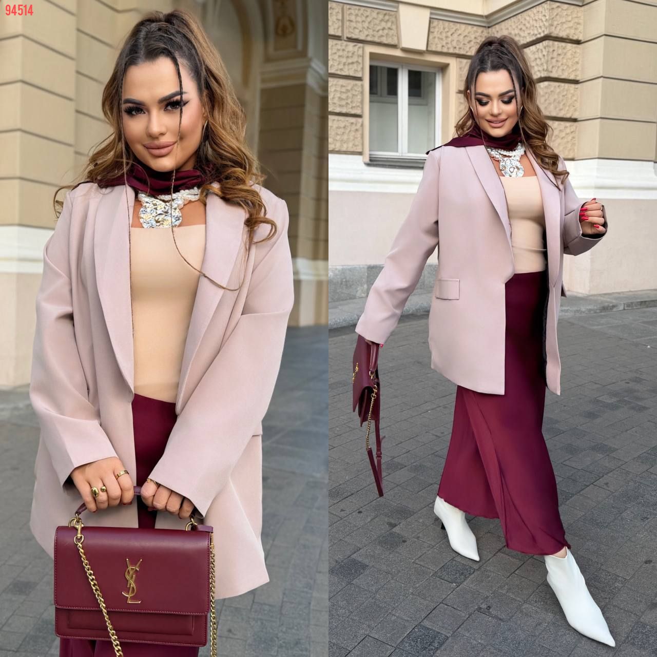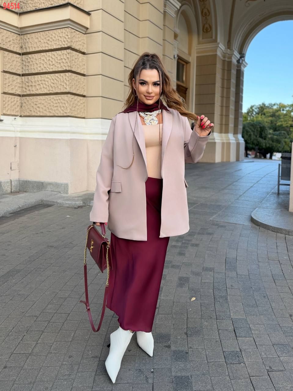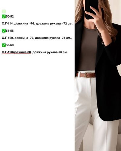 Матеріал: костюмна тканина – щільна, м’яка та тримає форму. Піджак має підкладку та підплечники.