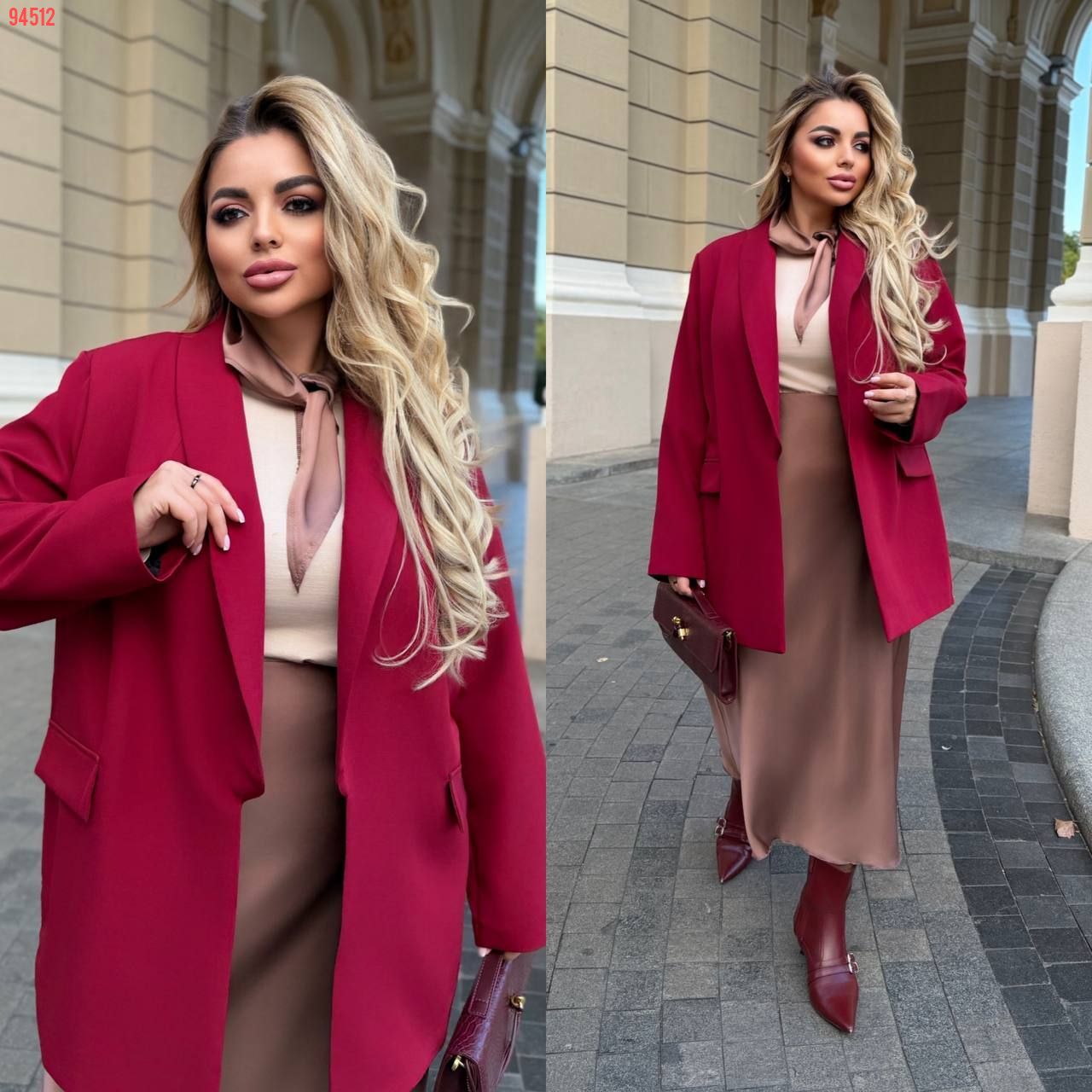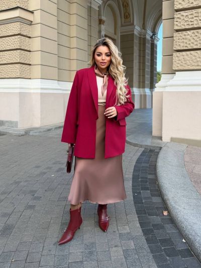 Матеріал: костюмна тканина – щільна, м’яка та тримає форму. Піджак має підкладку та підплечники.