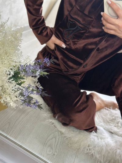 Сорочка на гудзиках + штани з комфортною гумкою контрастний кантик та стильна емблема на кишені (вишивка) ідеально підходить як для сну, так і як домашній костюм