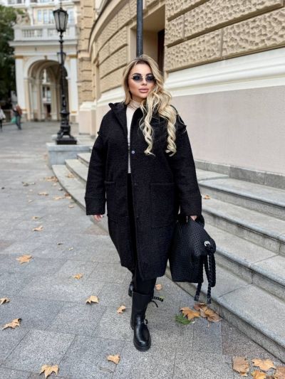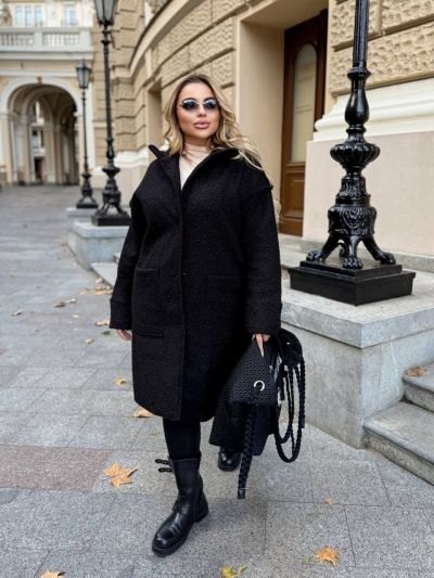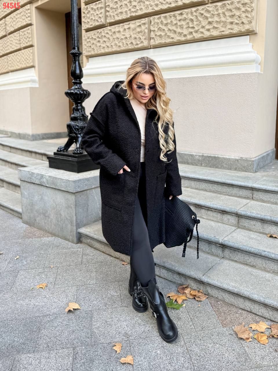 барашек без підкладу.Капюшон отделка чорна барашком,внутрішня сторона також.