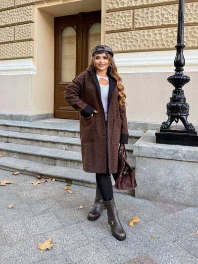 барашек без підкладу.Капюшон отделка чорна барашком,внутрішня сторона також.