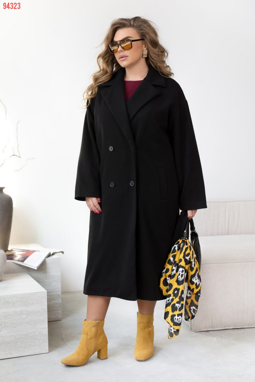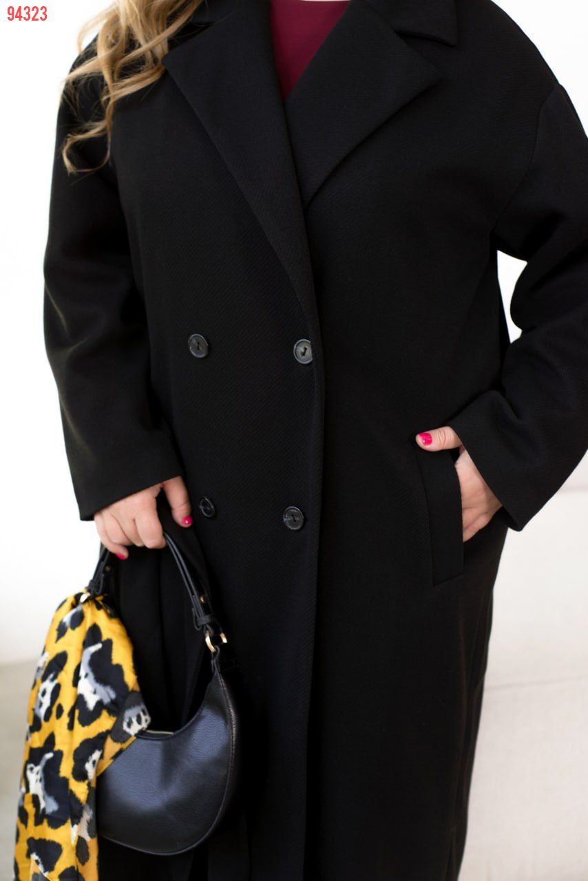Стильне монохромне двобортне пальто oversize ідеально впишеться як в строгий діловий стиль, так і в актуальні образи в стилі casual. Воно буде ідельно поєднуватися з елегантними брюками, спідницями і сукнями, а також з комфортними спортивними костюмами та кросівками. Модель на підкладці доповнена довгими рукавами з приспущеною лінією плечей, відкладним коміром і зручними кишенями. Пояс входить в комплект.
