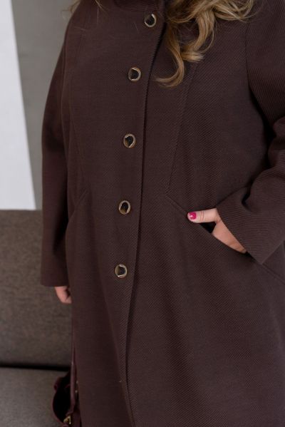 Вільний крій дарує легкість і свободу рухів, а комір-стійка додає образу елегантної стриманості. Стильний декоративний шов підкреслює силует і надає особливого шарму. Довгі рукава створюють гармонійний баланс, а зручні кишеньки та класична застібка на ґудзики роблять пальто не лише красивим, а й неймовірно практичним.