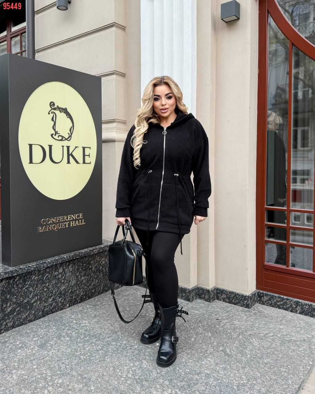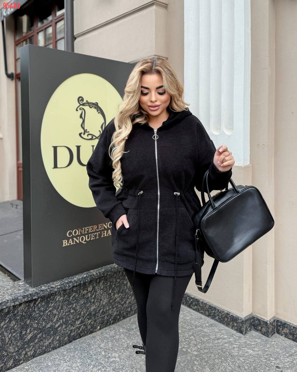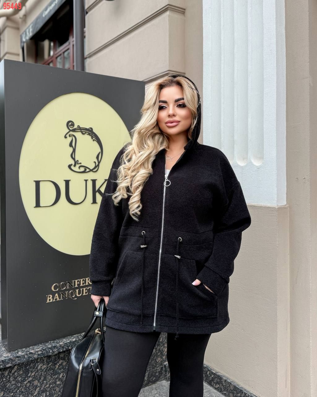 Довжина комфортна – прикриває стегна, створюючи акуратний та витягнутий силует.