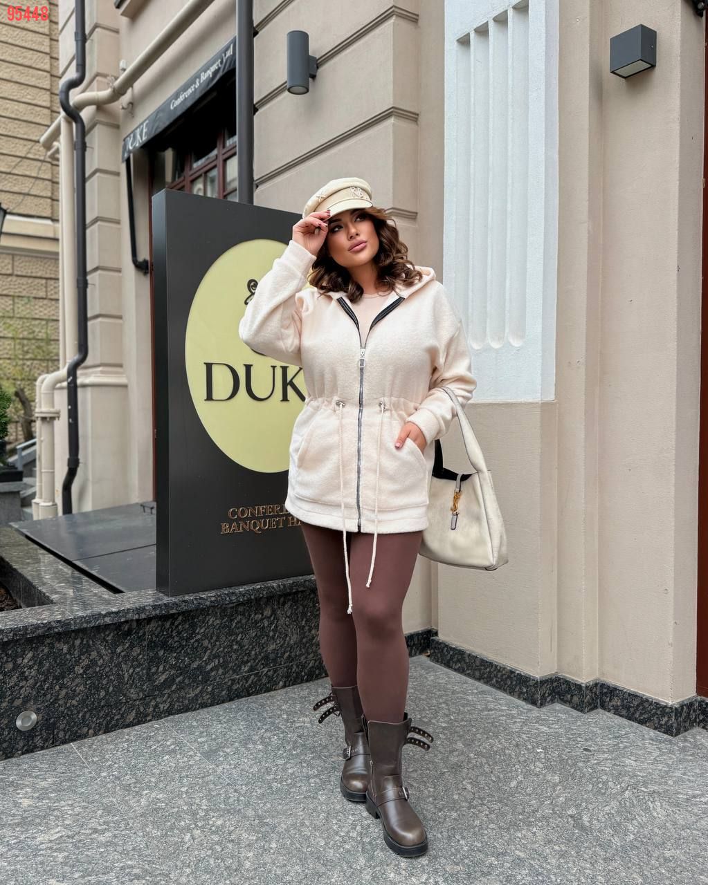 Блискавка по всій довжині. Зручна глибока кишеня «худі». Регульована куліска на талії підкреслює фігуру. Капюшон для захисту від вітру. Довжина комфортна – прикриває стегна, створюючи акуратний та витягнутий силует.