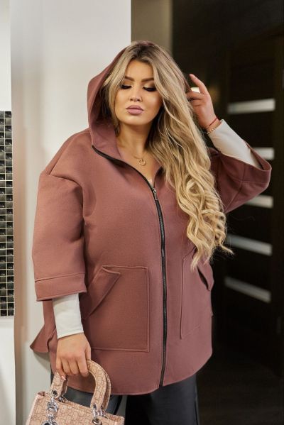 Додаткові характеристики: Неймовірно стильне пальто , комфортне із якісної двосторонньої тканини має прямий вільний силует та капюшон , застібається на блискавку з двома накладними кишенями, рукав вільний довжина 3/4