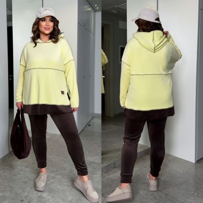 Стильний костюм виготовлений з якісного велюра, цікавий крій. Тканина м'яка та приємна до тіла. Туніка вільного крою, штани 7/8 на манжеті, висока посадка, кругова резинка. Якісні лекала.