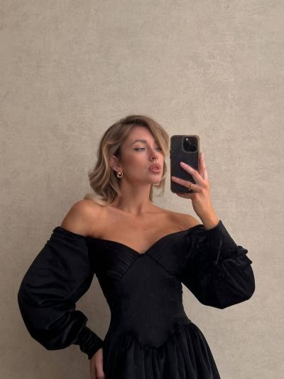 Тканина: оксамит, на плечах резиночка, що дає можливість приспустити на плечі