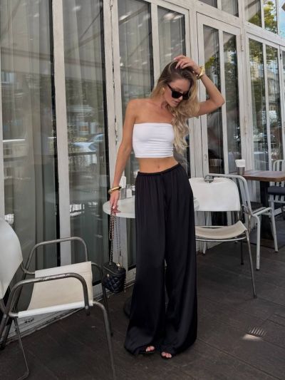 Самі актуальні кольори сезону. Штани мають середню посадку, тоненький не масивний пояс, вільний крій без бокового шва. Тканина мʼяка та приємна до тіла.