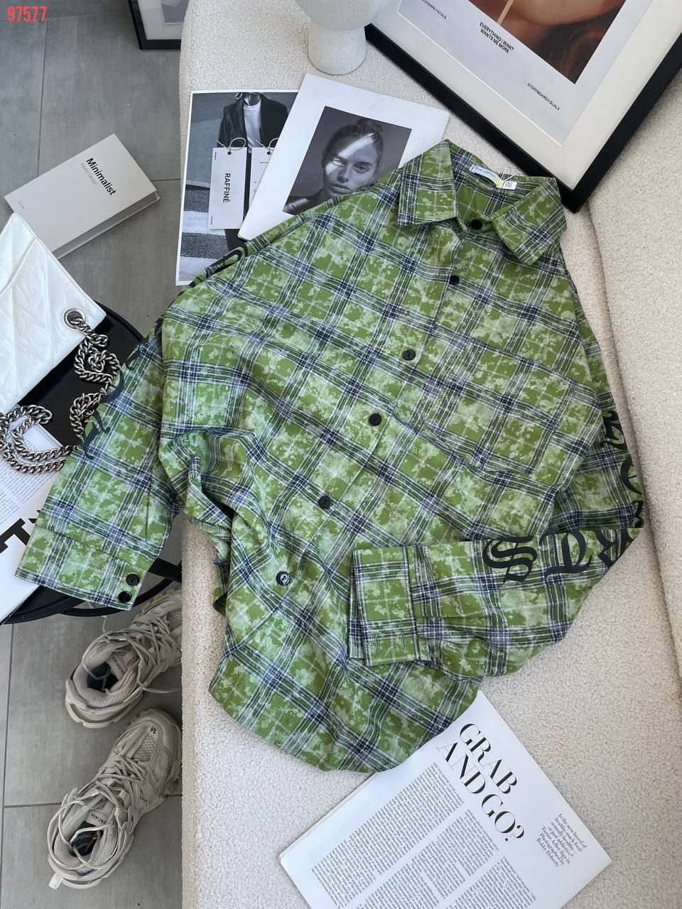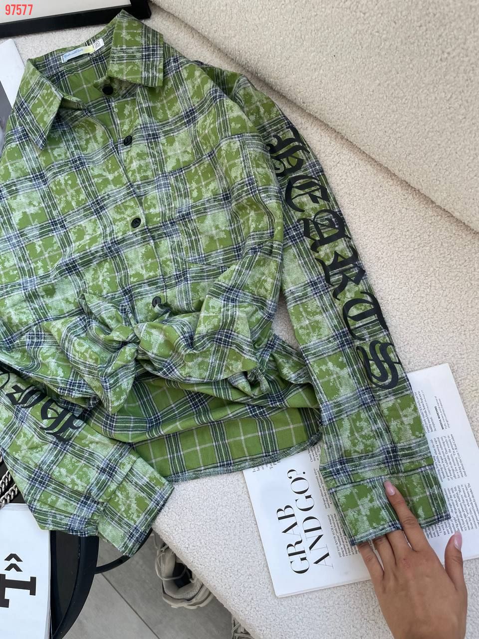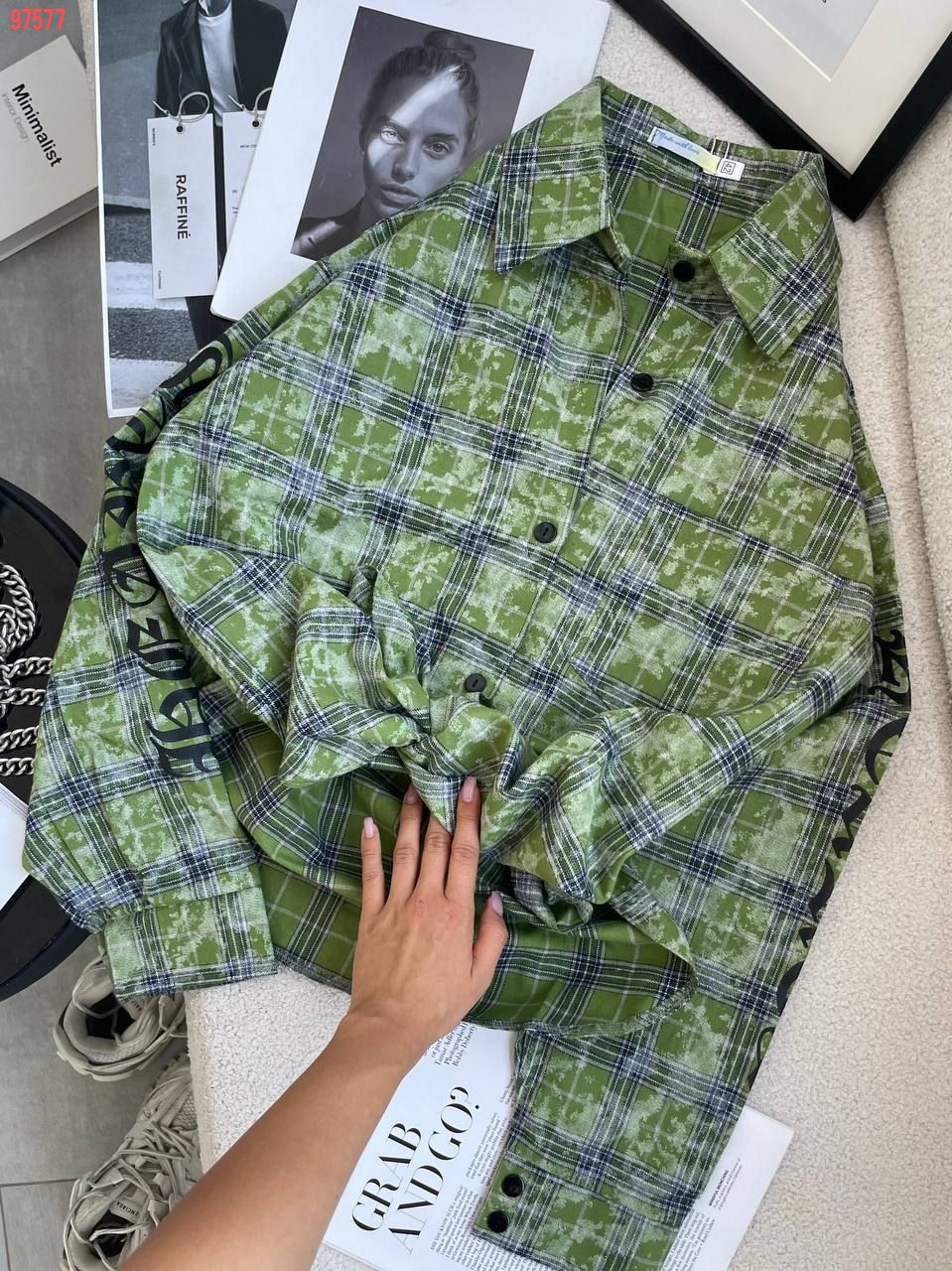 Сорочка HEARTS в клітинку зелена №97577