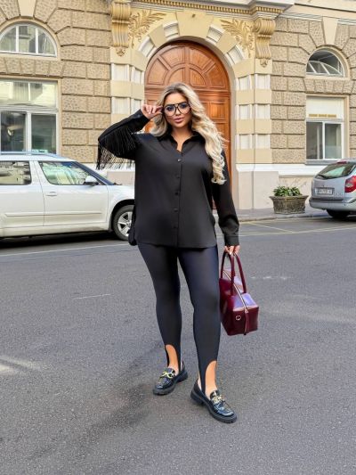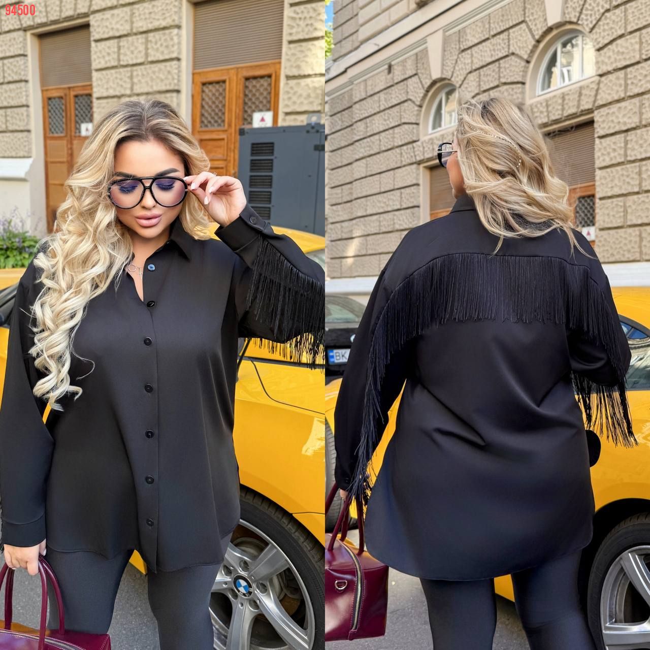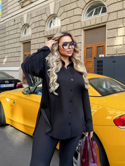 Сорочка фіксується ґудзиками за планкою. Рукав на манжеті, фіксується ґудзиками. Декорована бахромою. Тканина не мнется. Не просвічує.