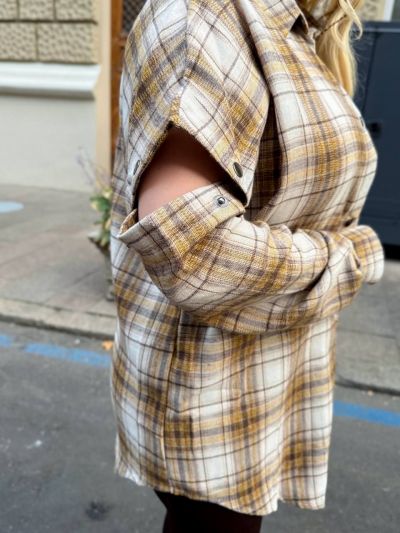 Стильна сорочка в клітинку зі відстібними рукавами.Сорочка трансформер.Рукава на кнопці.
