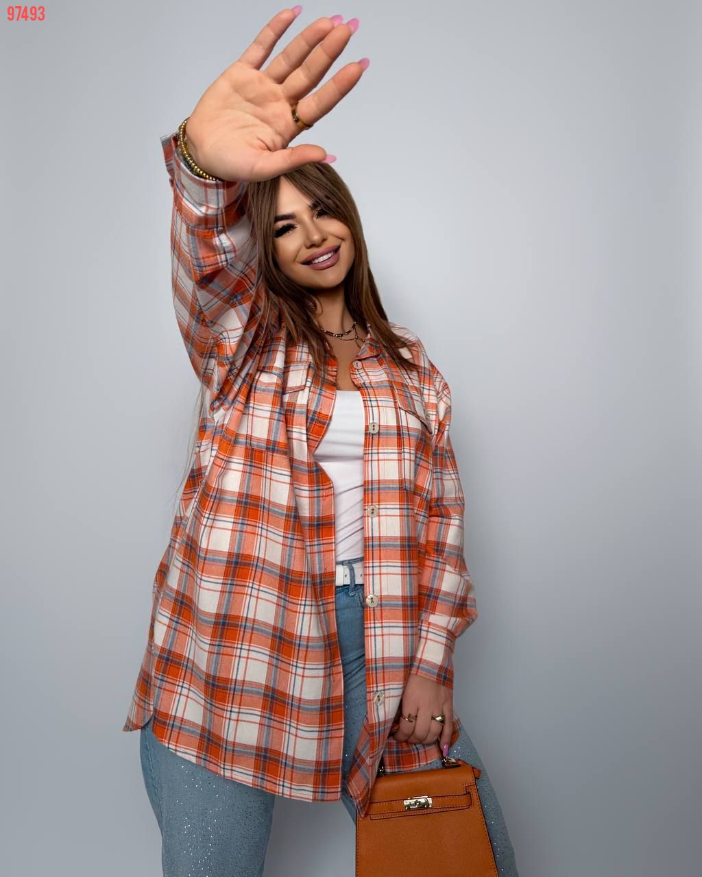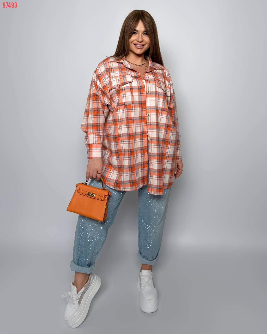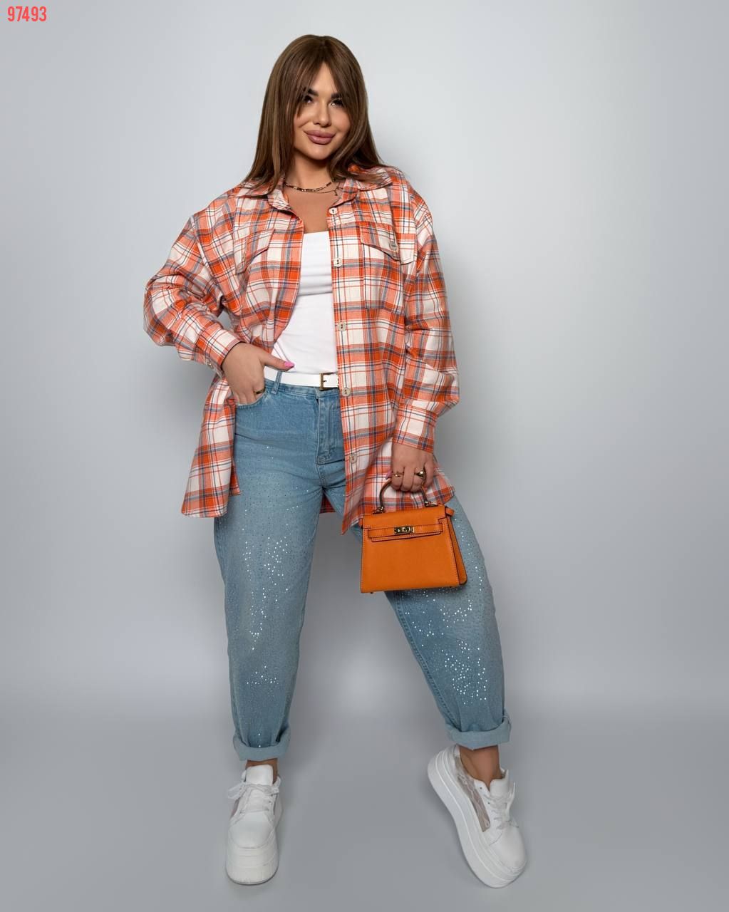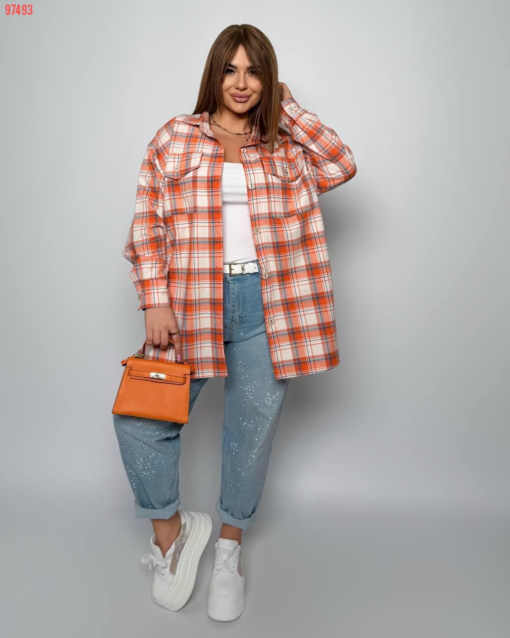 Комфортна універсальна сорочка з кишенями на гудзиках, з розрізами з боків. Позаду трохи довше.
