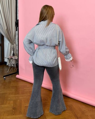 Сорочка вільного крою із софт-котону на ґудзиках та мереживом на рукавах