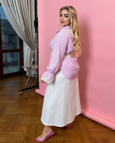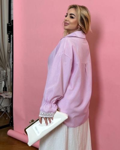 Сорочка вільного крою із софт-котону на ґудзиках та мереживом на рукавах