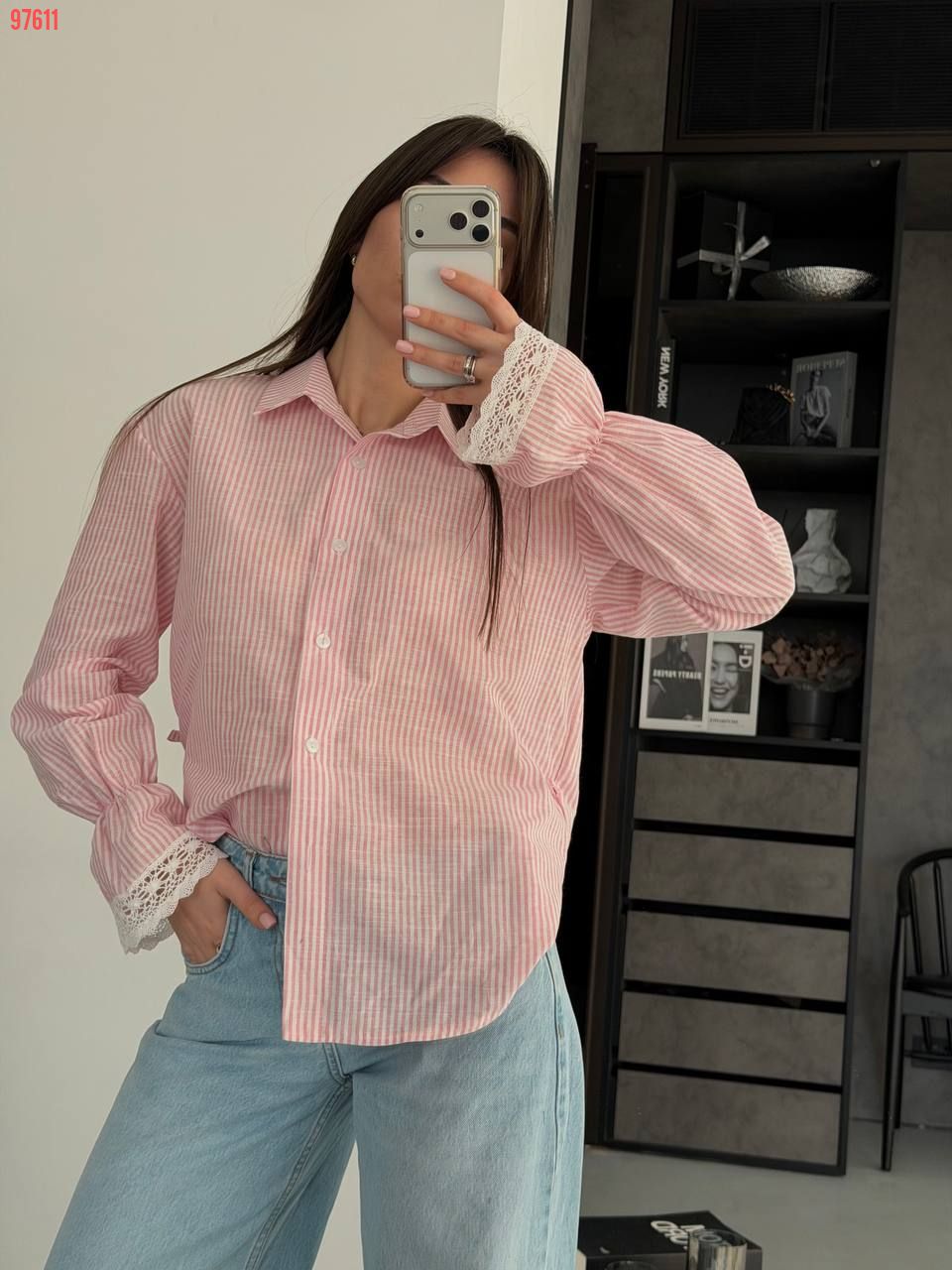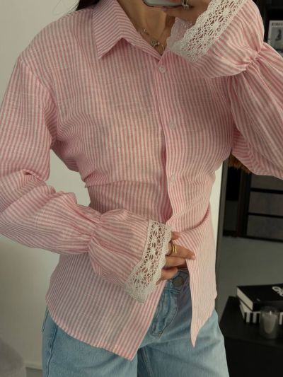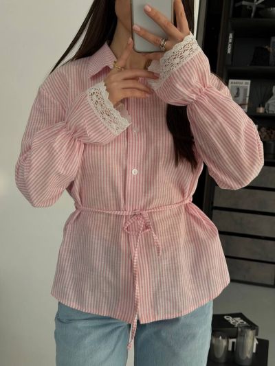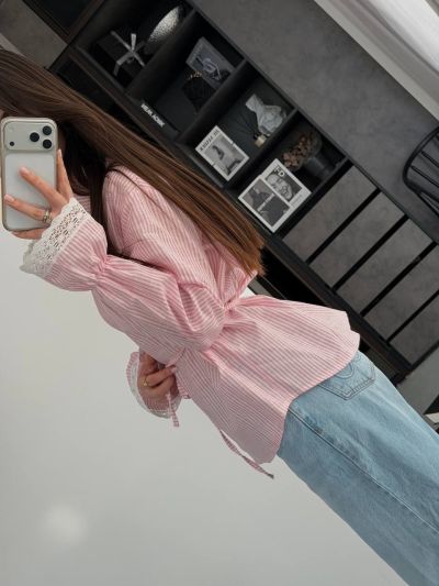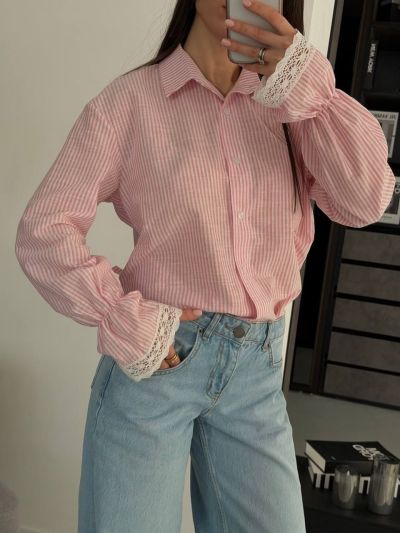 Стильна та яскрава сорочка з легкої тканини та мереживом на рукавах