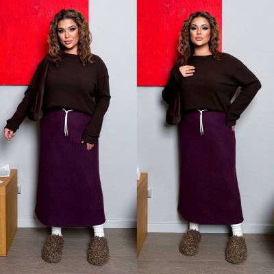 Тепла спідниця на холодну пору , покрою трапеція , талія на резинці та шнурку .