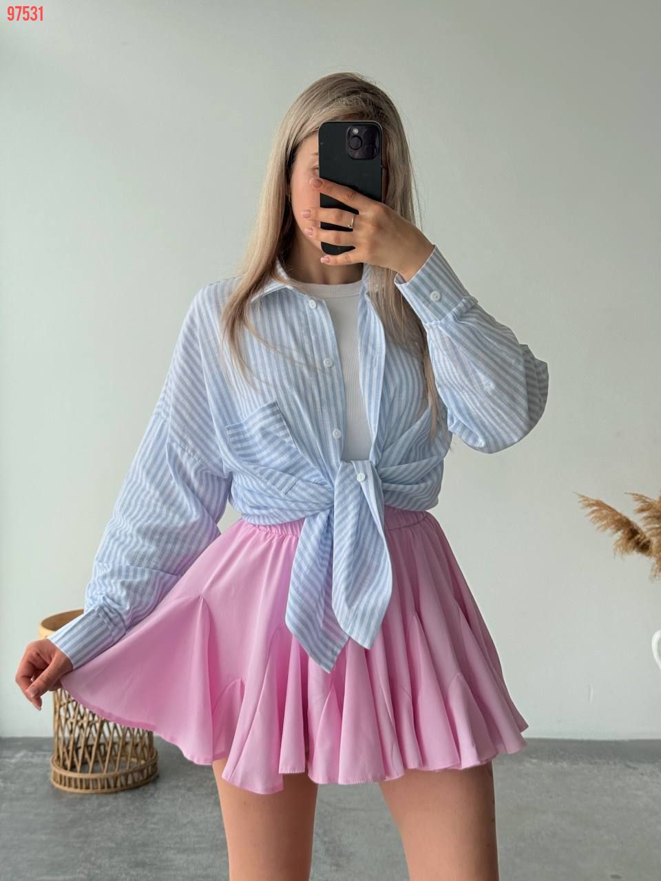 Класно поєднується з топами, сорочками, худі, светри - виходять стильні образи. Нереально пишна , створює ляльковий образ , а шортики під спидничкою додають комфорту, і не потрібно хвилюватись що щось видно