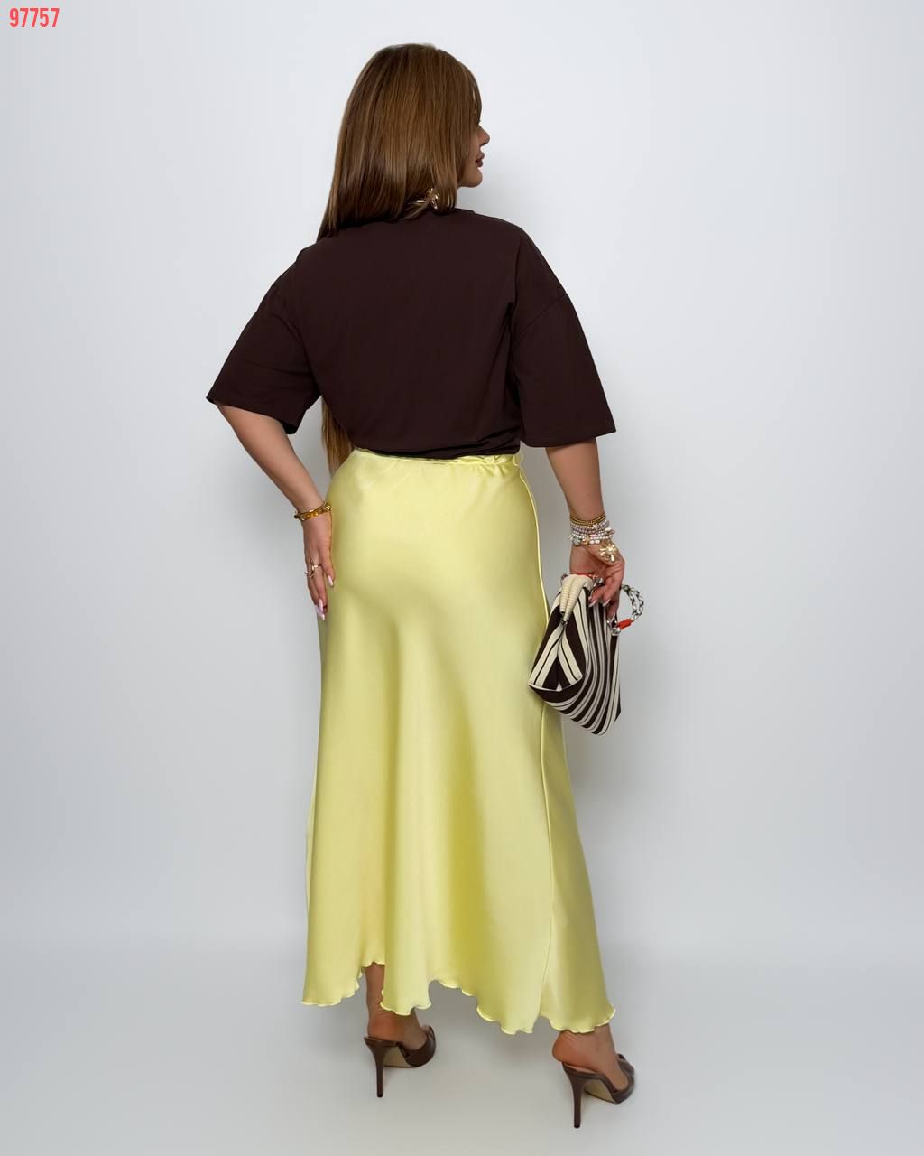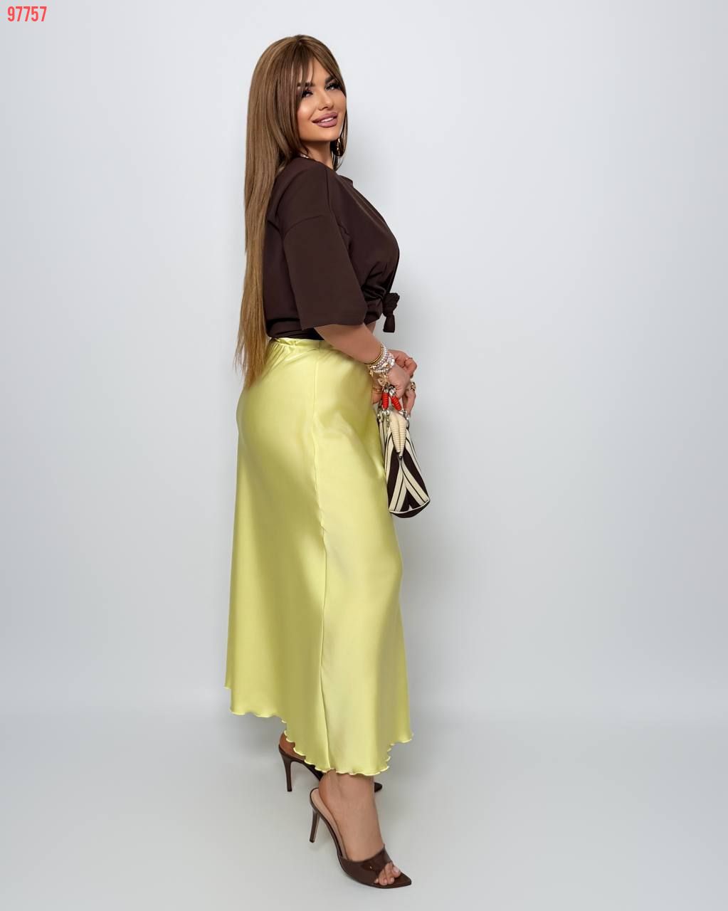 Спідниця з королівського атласу жовта №97757