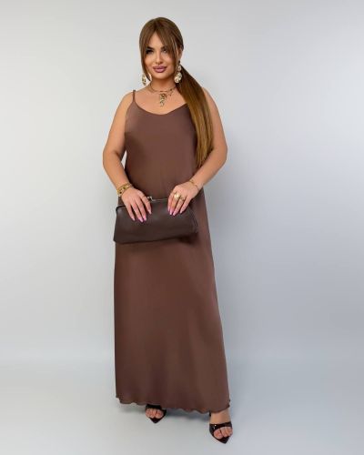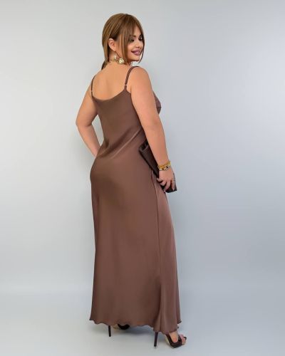 Спокуслова сукня з атласу шоколад №97717