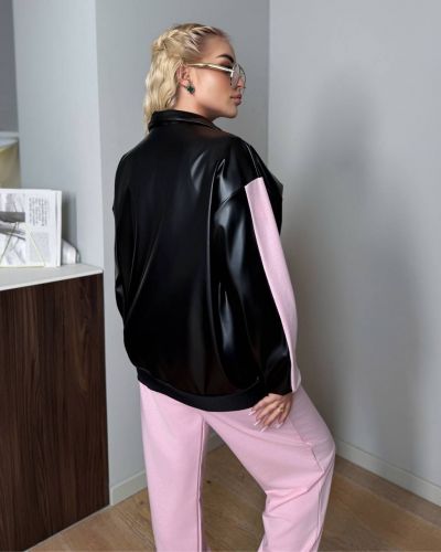 Бомбер+футболка+джогери.Жіночі бомбери із єко шкіри перестали бути частиною певного стилю одягу, і у сучасному модному світі – це важливий елемент будь-якого жіночого образу.