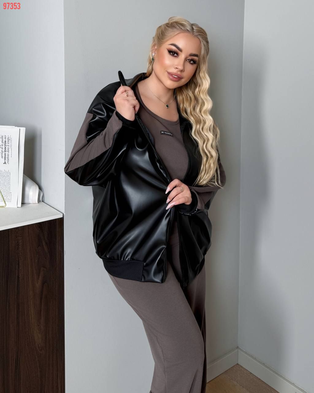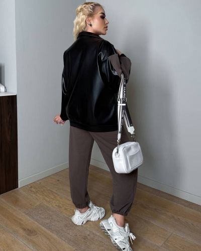 Бомбер+футболка+джогери.Жіночі бомбери із єко шкіри перестали бути частиною певного стилю одягу, і у сучасному модному світі – це важливий елемент будь-якого жіночого образу.