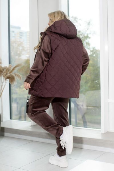 Зустрічайте наш універсальний костюм трійка, створений для стильних і зручних образів у прохолодну погоду. Комплект складається з жилетки з капюшоном та накладними кишенями, кофти зі спущеними рукавами та капюшоном зі шнурком, а також прямих штанів з середньою посадкою і кишенями по боках.Жилетка додає практичності та стилю завдяки капюшону і накладним кишеням. Кофта з капюшоном і спущеними рукавами створює невимушений і затишний образ. Прямі штани з середньою посадкою забезпечують комфорт і стиль. Вони практичні завдяки кишеням по боках і низу на резинці. Цей костюм – вибір активних жінок, які цінують якість і стиль.Ідеальний варіант, для жінок, які поспішають та полюбляють бути в комфорті. Доповніть образ кросівками чи об'ємними чоботями