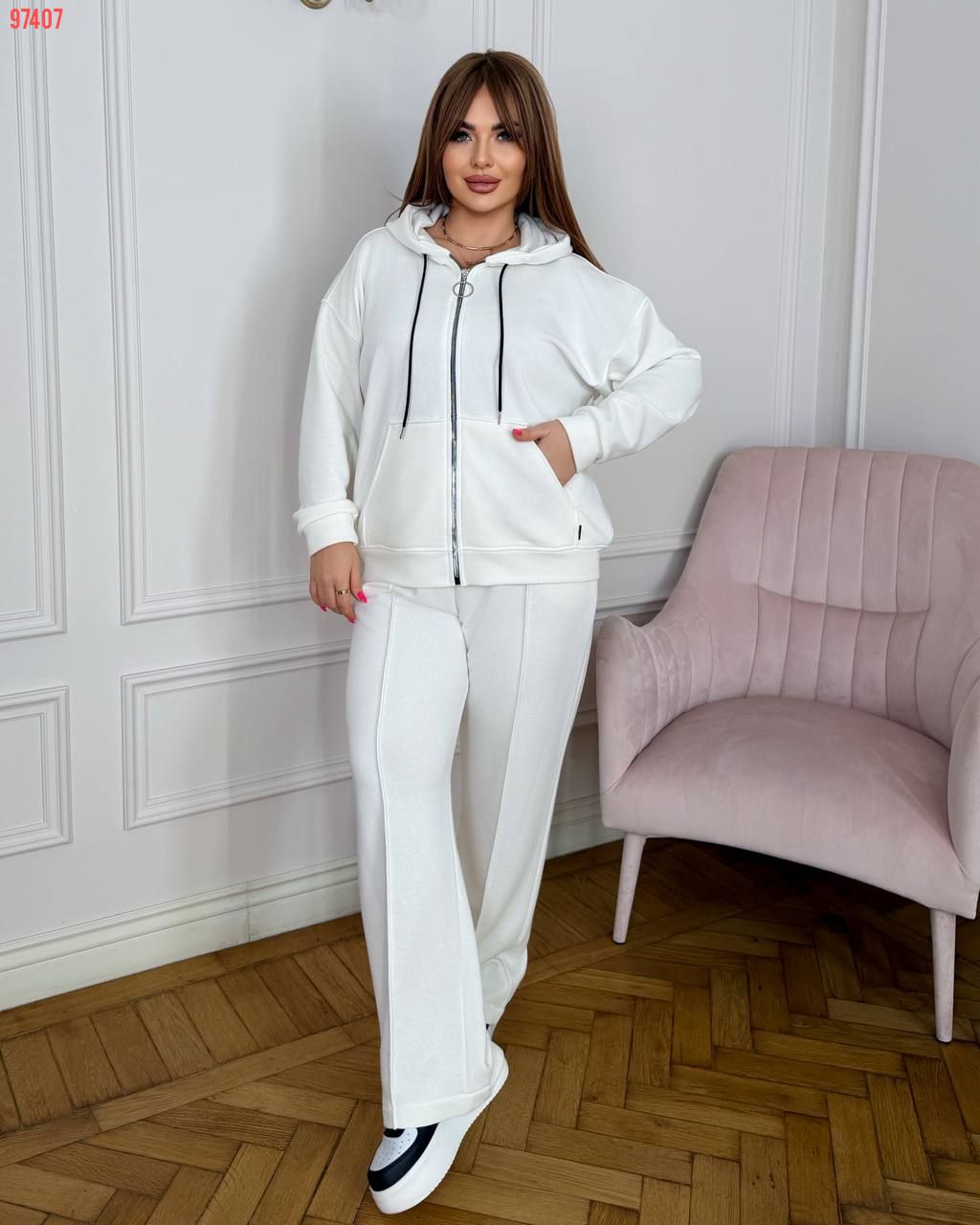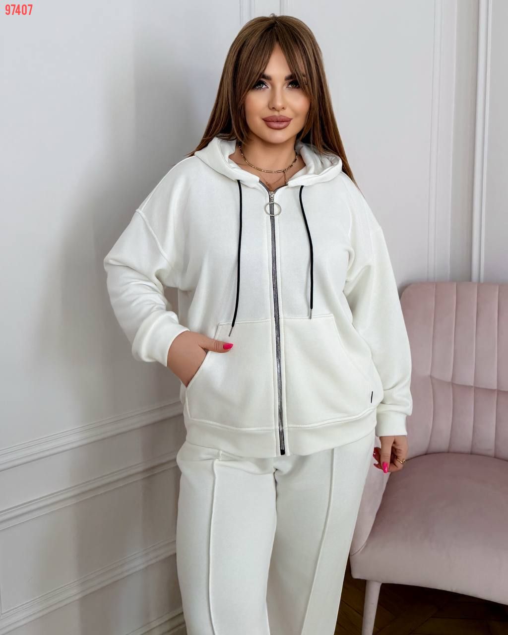 Спортивний костюм на змійці молоко №97407