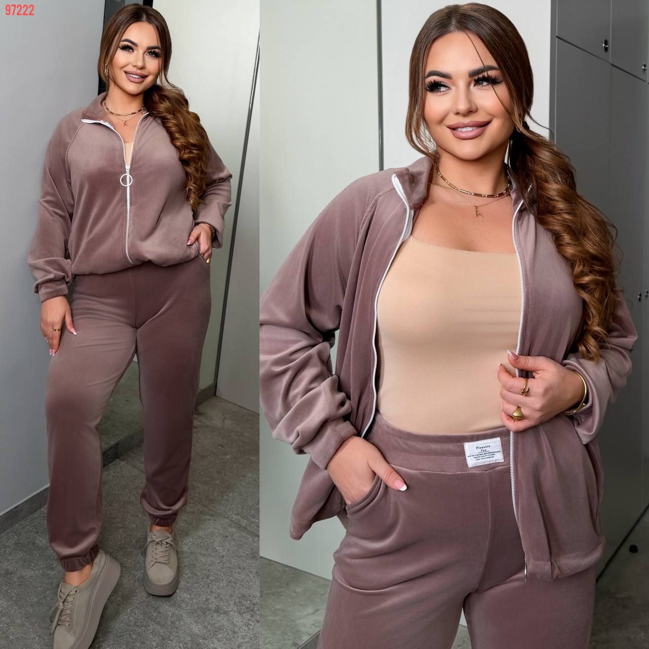 Спортивний костюм з велюру в кольорі мокко №97222